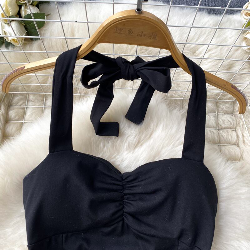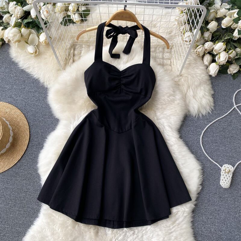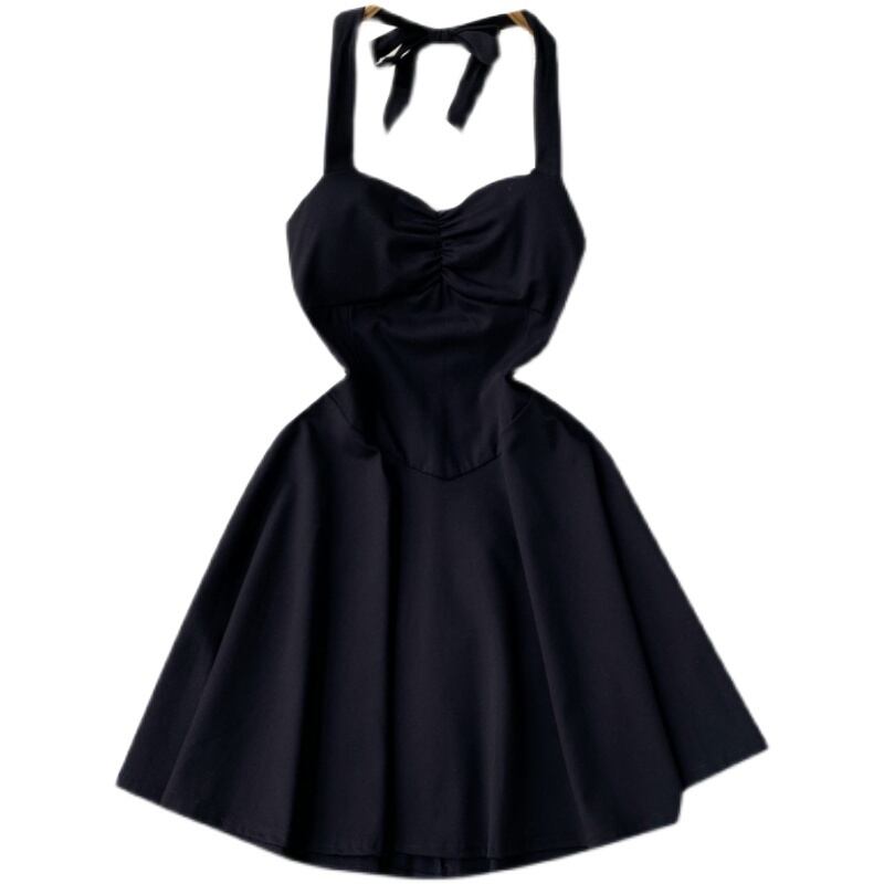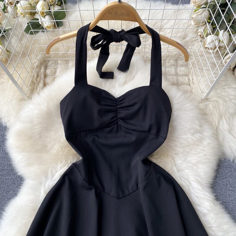 スパイス ガールズ シックな見事なウエスト スリム ホルター ネック ドレス夏の女性のヘップバーン スタイル A ライン リトル ブラック ドレス サマー 夏物 Aライン lyxaj73258696469
