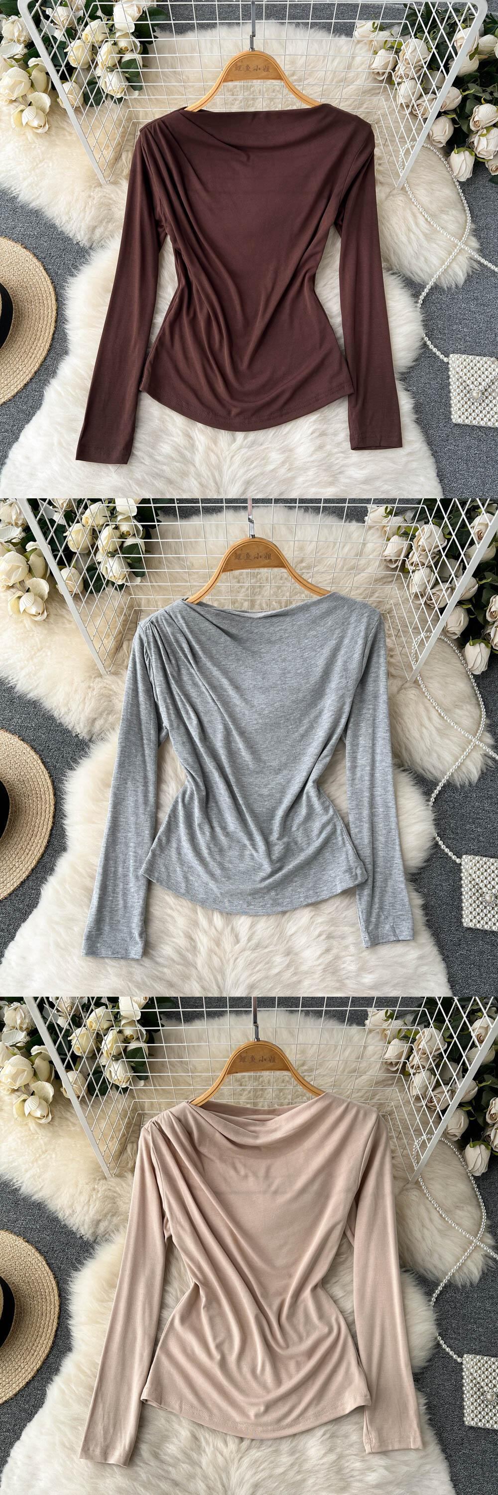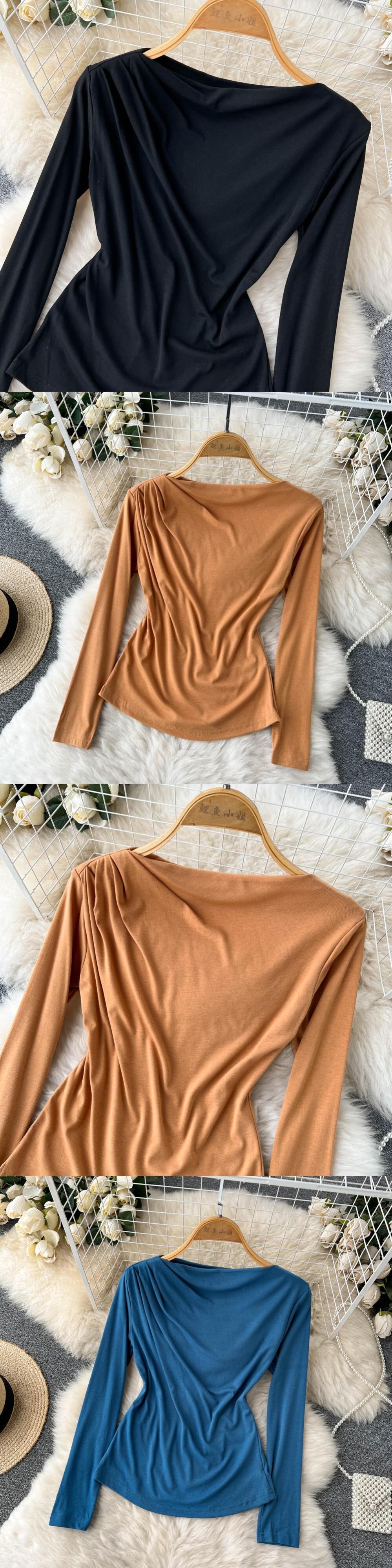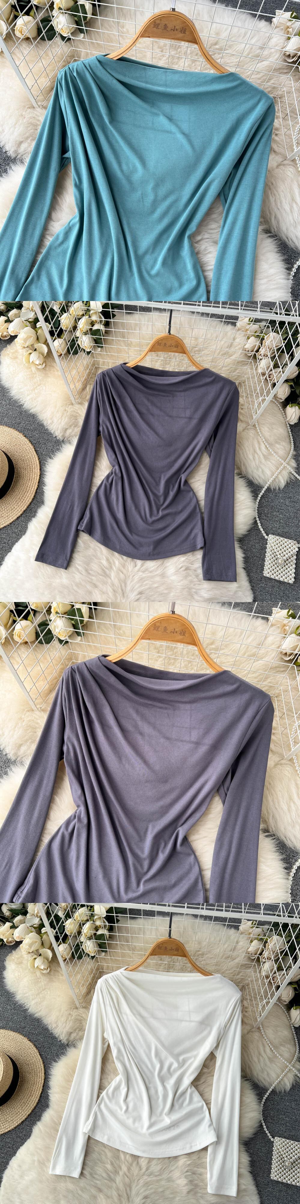 アメリカン レトロ スリム フィット 薄手 インナー ボトムス シャツ 長袖 Tシャツ 秋 レディース 無地 オールマッチ 洋服 ロング オータム 秋物 ソリッドカラー lyxaj55947472632