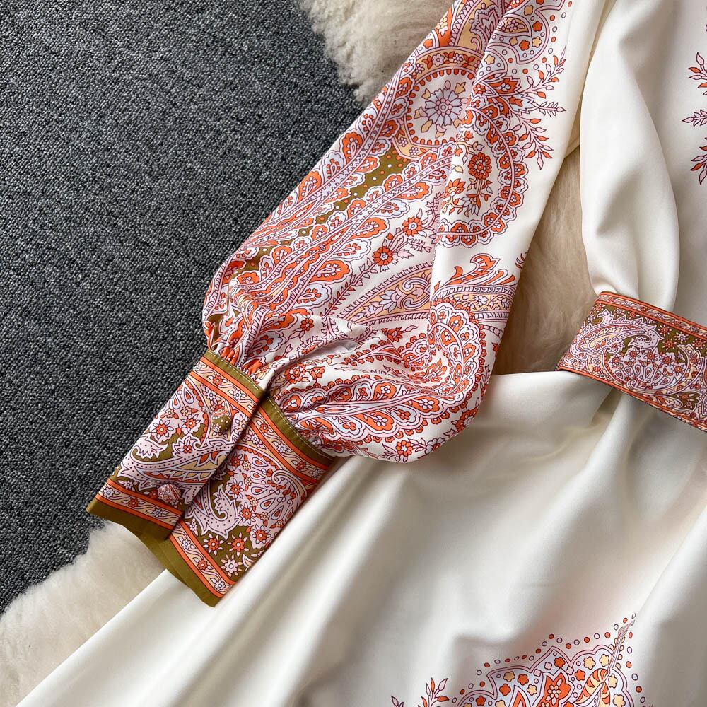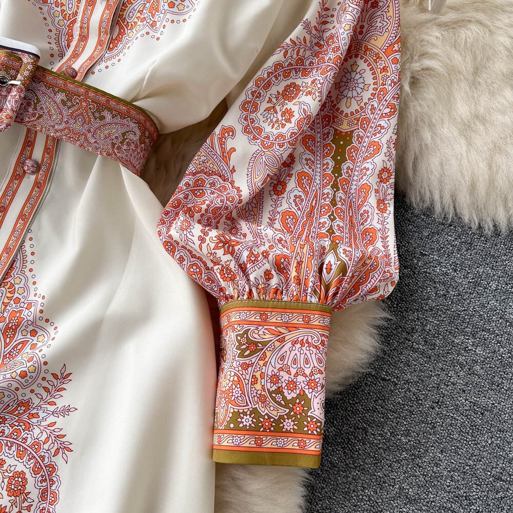 春と秋の新しいレトロな個性的なファッションプリントの気質のシングルブレストの長袖のスイングドレスAラインのロングスカート スプリング 春物 オータム 秋物 lyxaj53905502619