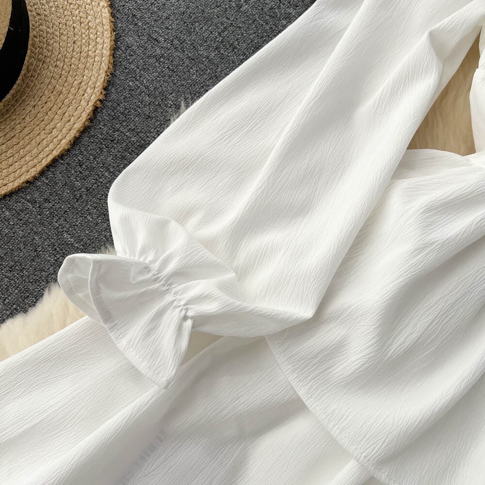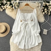 小さな有名人の気質トランペット長袖ドレス秋の女性のドレスフレンチウエスト気質のスクエアカラーの妖精のスカート ロング オータム 秋物 スクウェア lyxaj68621619670