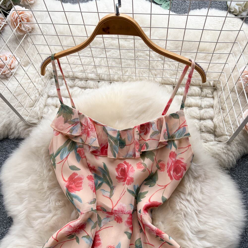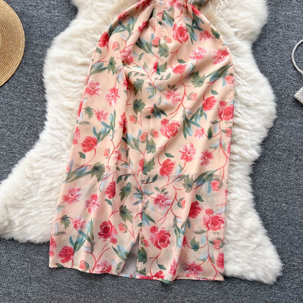 旅行や休暇の風壊れた花の妖精のスカート女性スーパー妖精サスペンダー ロング スカート海辺のセクシーな油絵高度な感覚のドレス夏 サマー 夏物 フラワーデザイン lyxaj17986690922