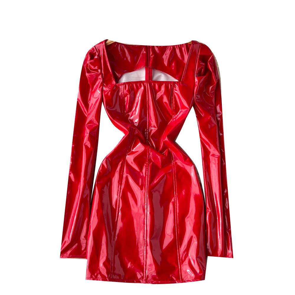 秋と冬の新しいセクシーな女の子 PU レザー スカート女性の長袖スクエア ネック ウエスト痩身ミッドレングスの西洋スタイルのヨーロッパとアメリカのドレス ロング オータム 秋物 ウィンター 冬物 スクウェア ヨーロピアン lyxaj19861395709