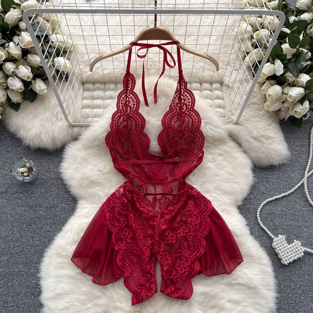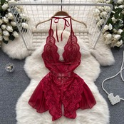 ピュアデザイストスタイル 夏 セクシー 誘惑 レーススプライシング ローカット 深いVネック レースアップ ホルターネック ホルターバック イレギュラーワンピース サマー 夏物 lyxaj38962403848