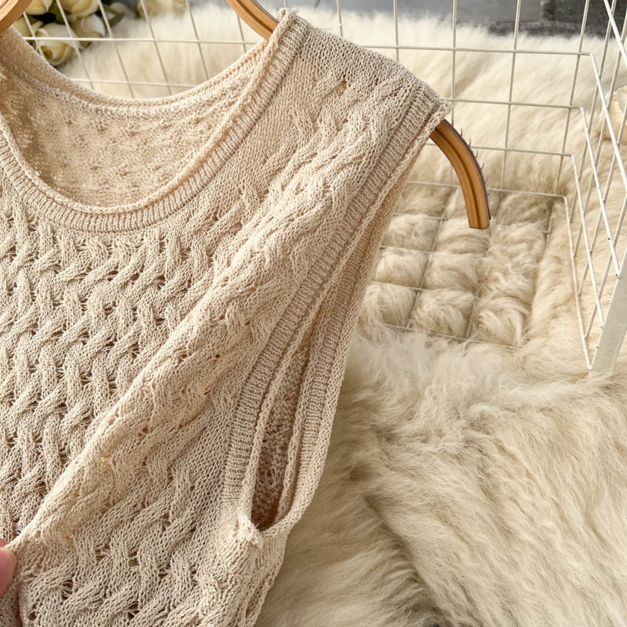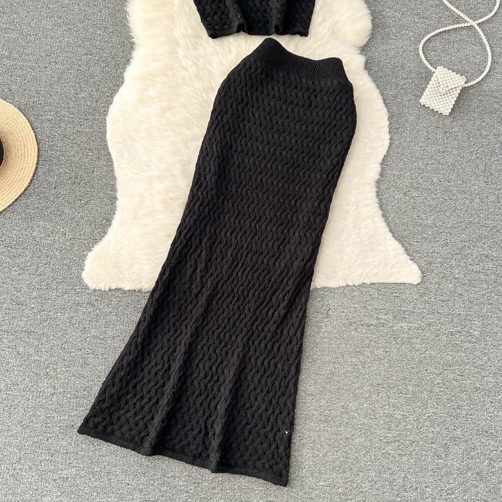 春夏の純粋な欲望の穏やかな気質のスーツの女性の中空ノースリーブショートベスト + フィッシュテールスカート 2 点セット スプリング 春物 サマー 夏物 ピュア lyxaj74258853173