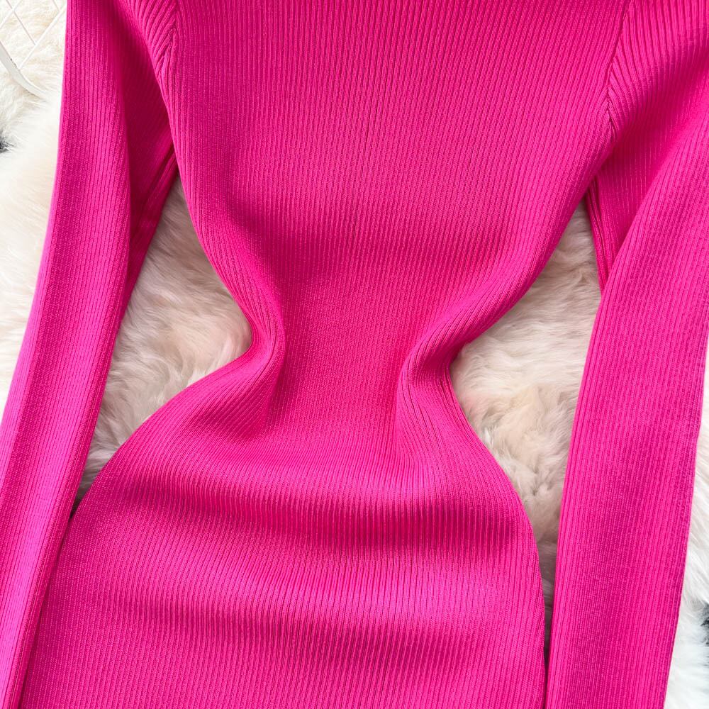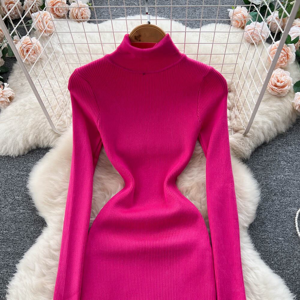 軽くて馴染むスタイルのハーフハイカラーニットワンピース 秋 レディース 上質なウエストウエストと細いスリットバッグ ヒップロングスカート トレンド オータム 秋物 lyxaj10319643029