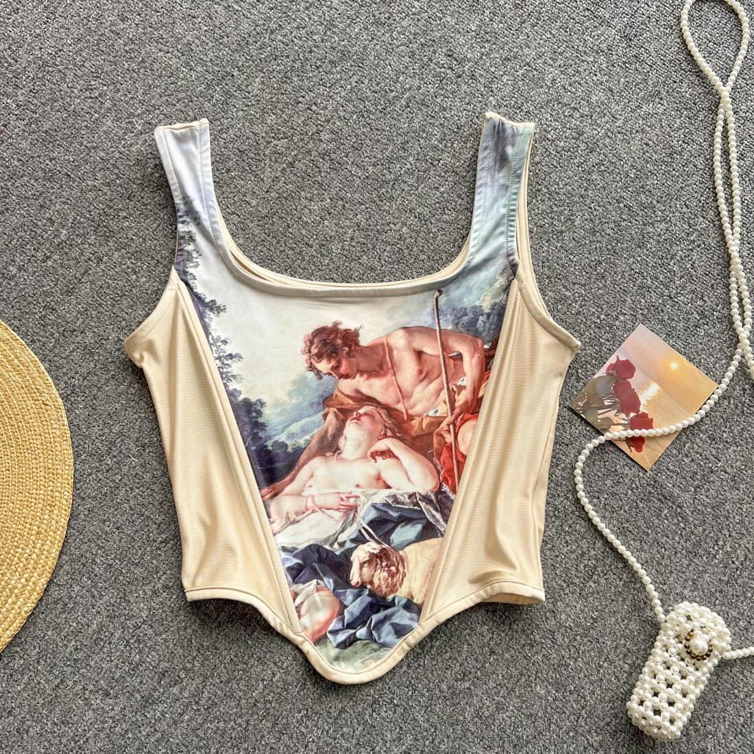 夏の新しい不規則なセクシーな女の子のファッション ヨーロッパとアメリカ スタイルの印刷短いセクション スリム キャミソール Tシャツ トップ ショート サマー 夏物 ヨーロピアン lyxaj45231673873