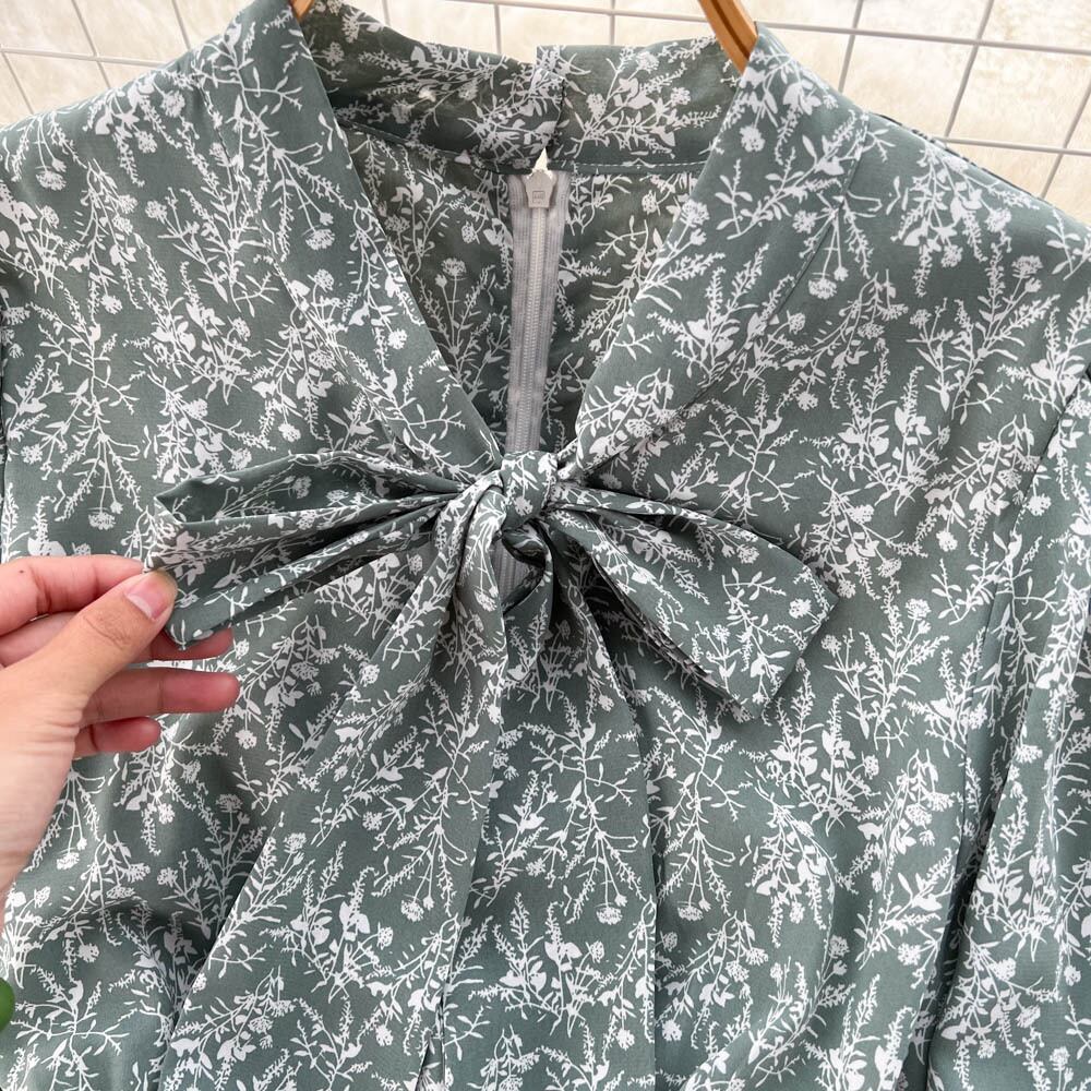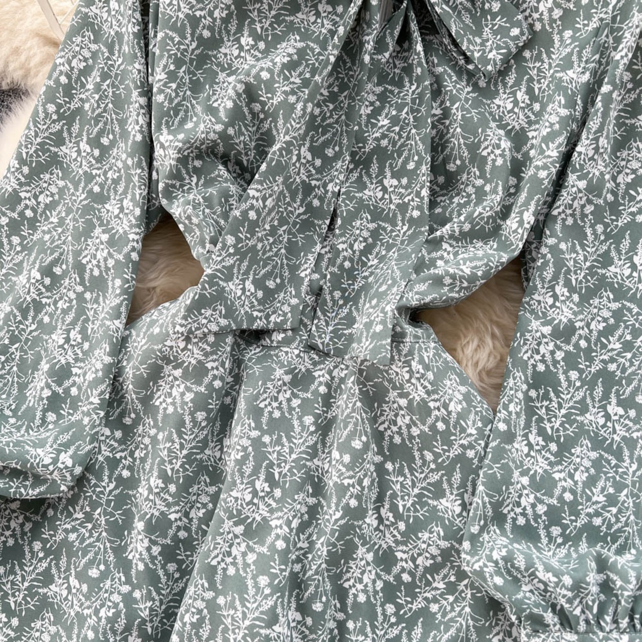 フレンチデザインセンスニッチクール風ボウランタンスリーブドレス秋の女性のウエスト花柄ドレス リボン オータム 秋物 lyxaj67143755048
