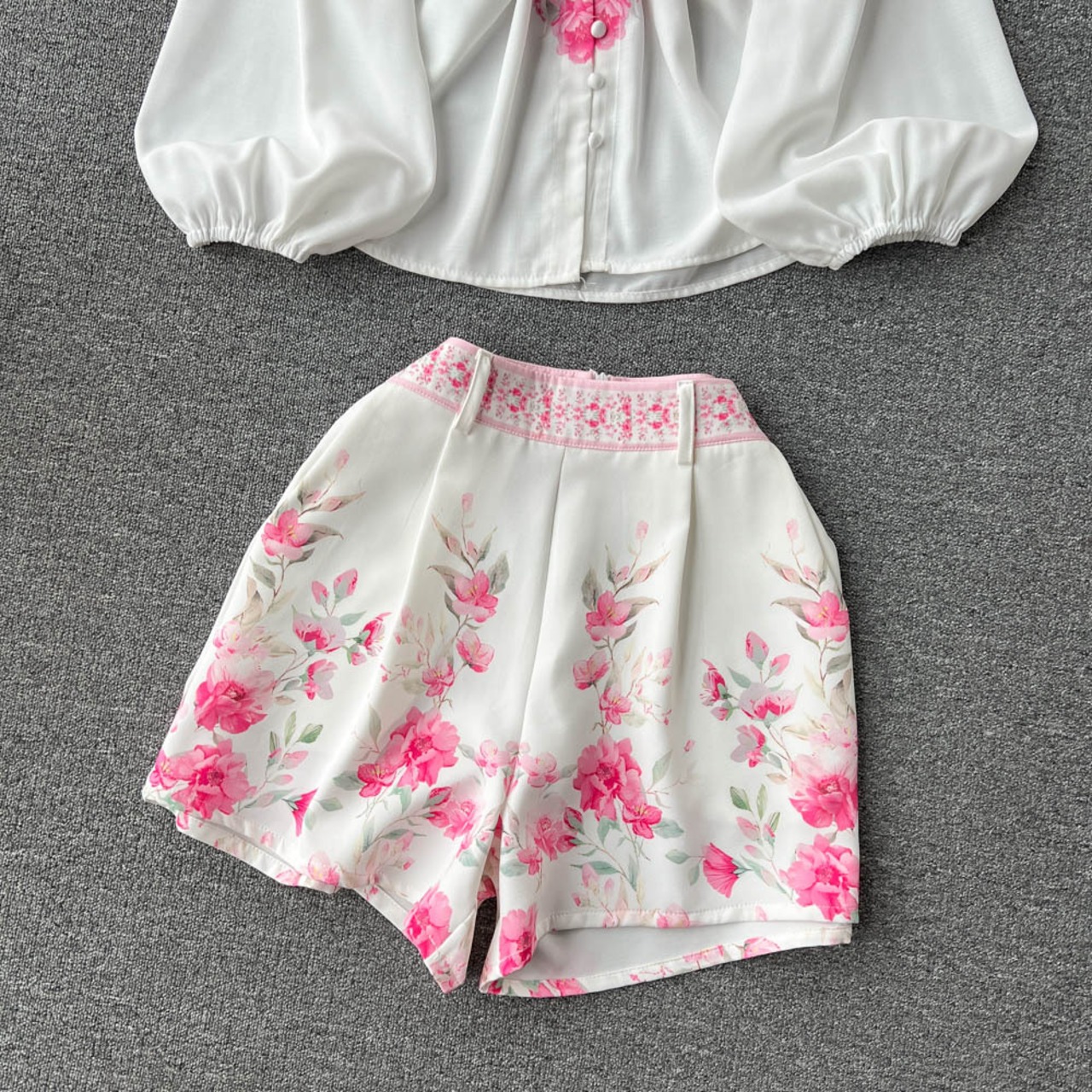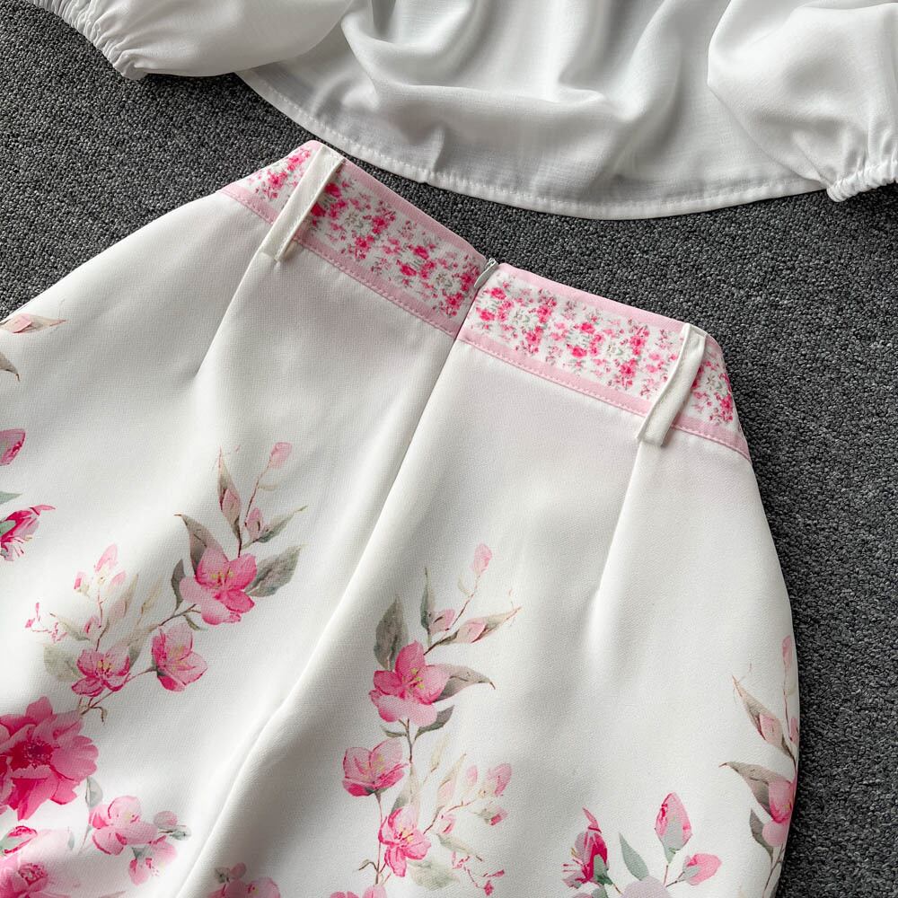 春夏ファッション洋風プリントスーツ女性ランタンスリーブレトロプリントシャツ+ハイウエストショーツ欧米ツーピースセット ハイウェスト スプリング 春物 サマー 夏物 ブルマー ヨーロピアン lyxaj73139756777
