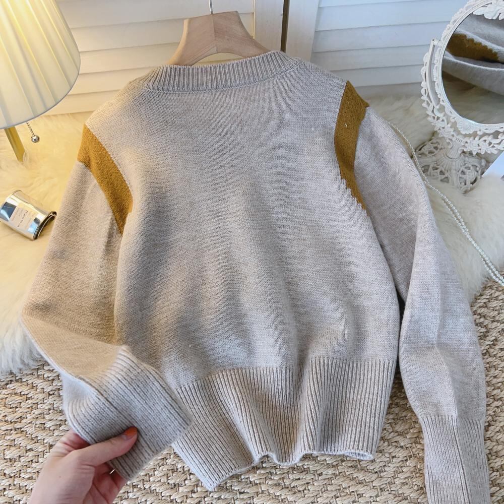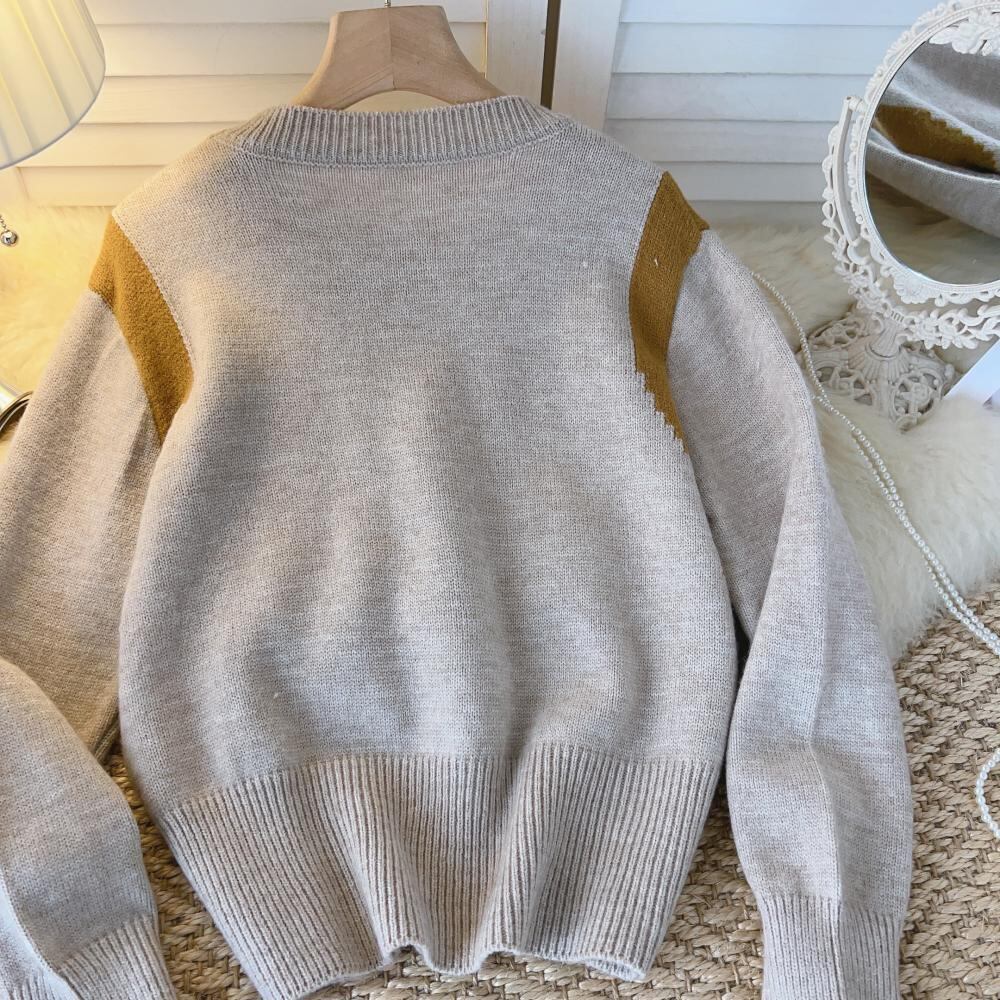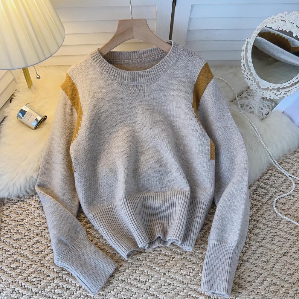 対照的な色のセーターの女性の怠惰なスタイル 2022 秋冬の新しいレトロなデザイン センス ニッチ ボトムス スリム シックなニット セーター オータム 秋物 ウィンター 冬物 lyxaj13271958576