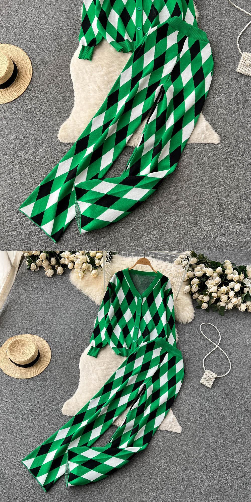 秋冬の欧米風菱形ニットスーツ女性Vネックセーターカーディガンジャケット+カジュアルストレートパンツ2点セット オータム 秋物 ウィンター 冬物 ヨーロピアン lyxaj90589082610