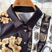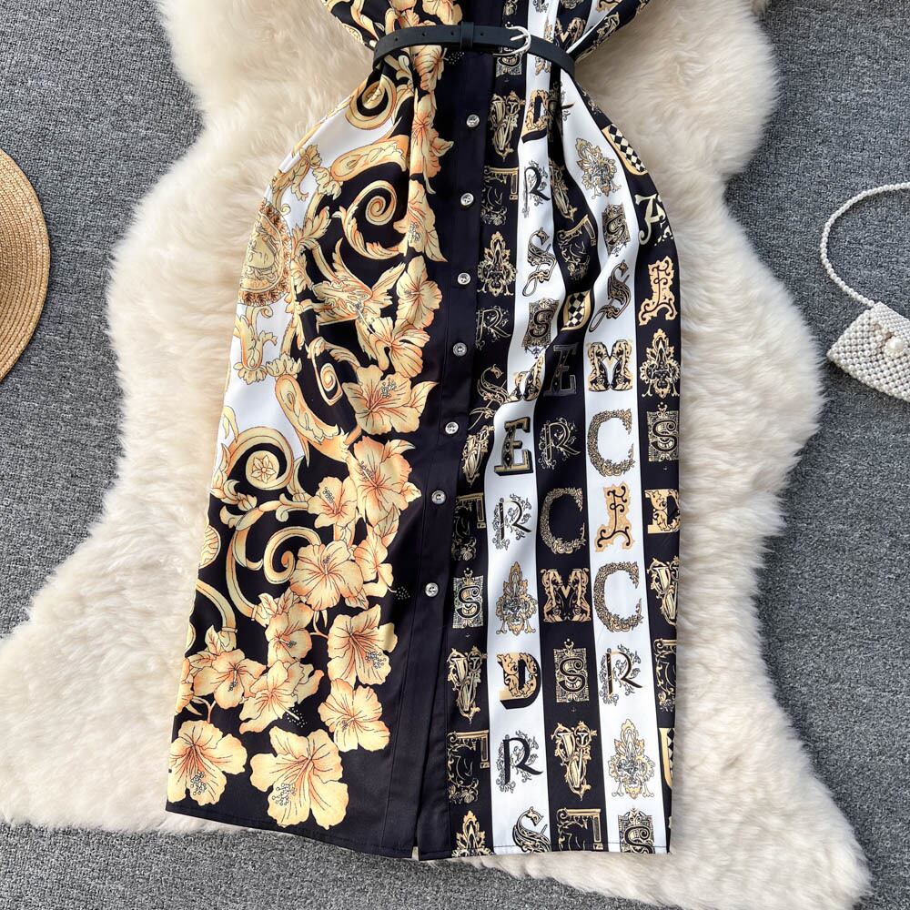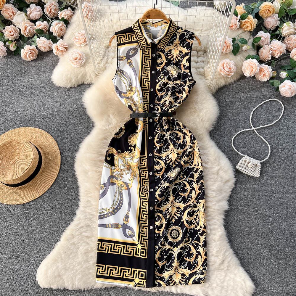 春夏新作気質ラペルノースリーブレトロシングルブレストミドル丈バロックプリントバッグヒップドレストレンディ スプリング 春物 サマー 夏物 lyxaj17402314209