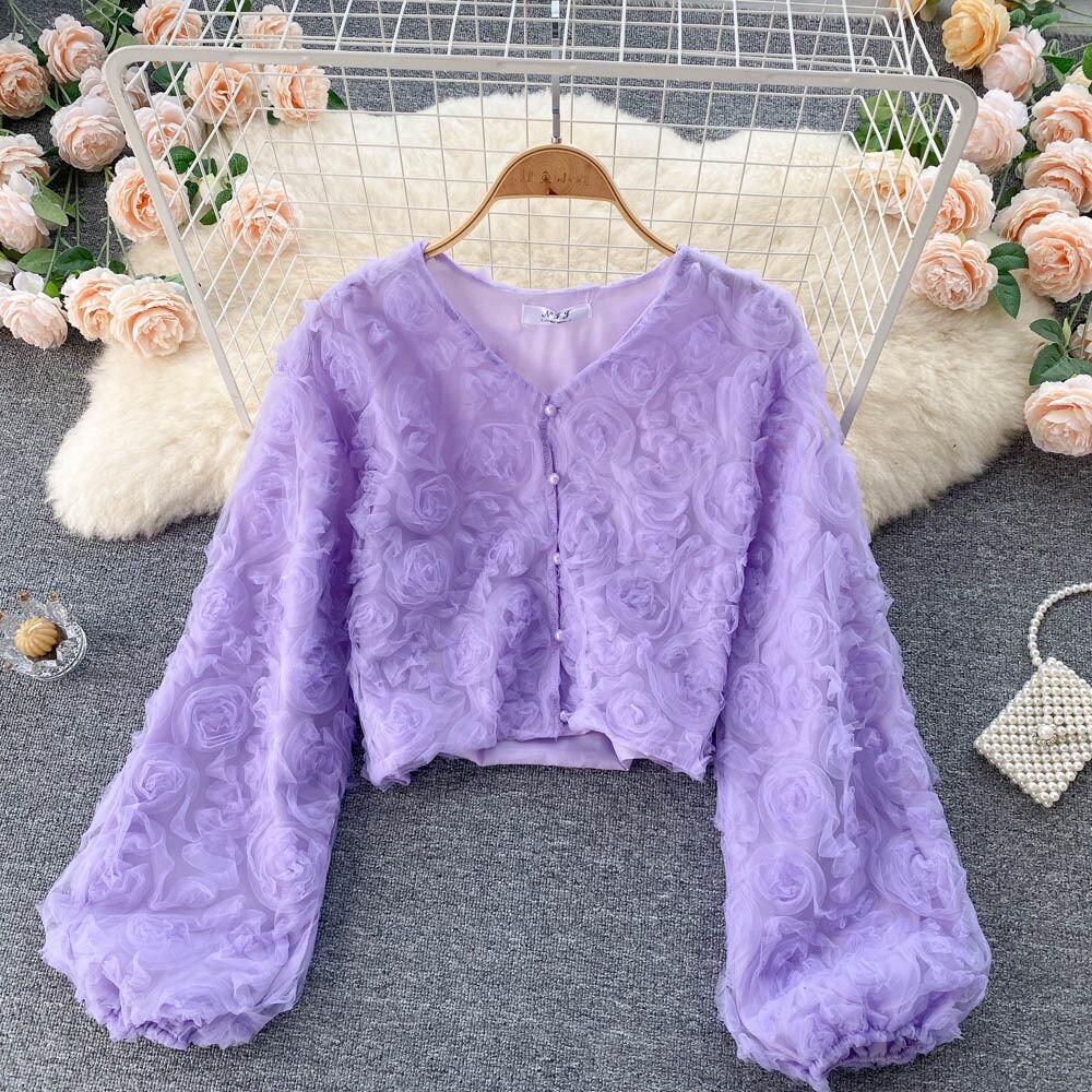初秋新作 フレンチスタイル スウィート スーパー フェアリーフラワー ショートシャツ デザインセンス ニッチ eign スタイル 年齢 引き下げ Vネック トップス レディース 大人ガーリー キュート カジュアル オータム 秋物 フラワーデザイン lyxaj65243739111