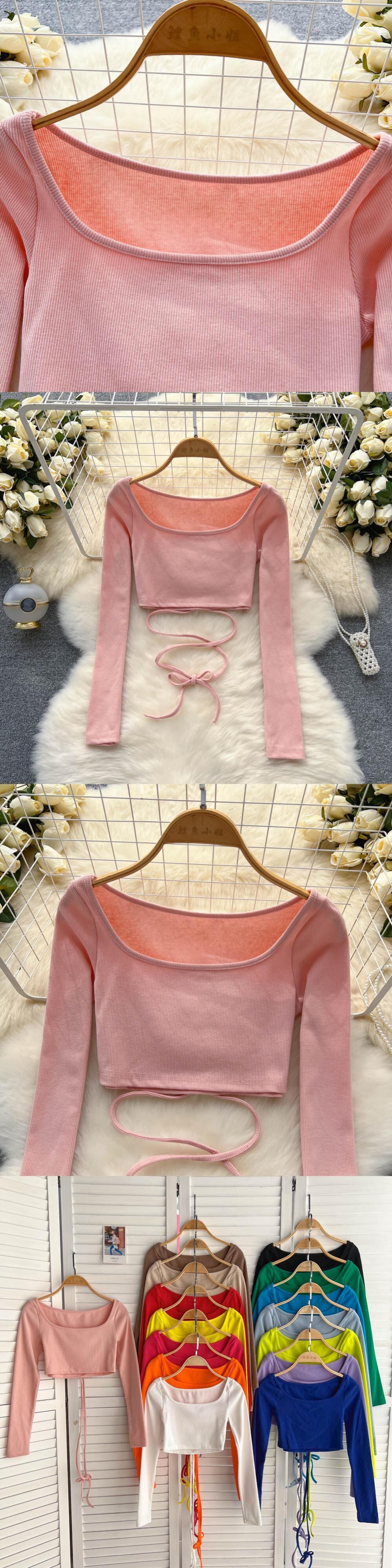 ホットスリムショート長袖Tシャツ女性の夏のスクエアカラーフロントショルダートップ純粋な欲望スタイルシックなオールマッチホワイトTシャツトレンディ ロング サマー 夏物 ピュア スクウェア lyxaj2907363932