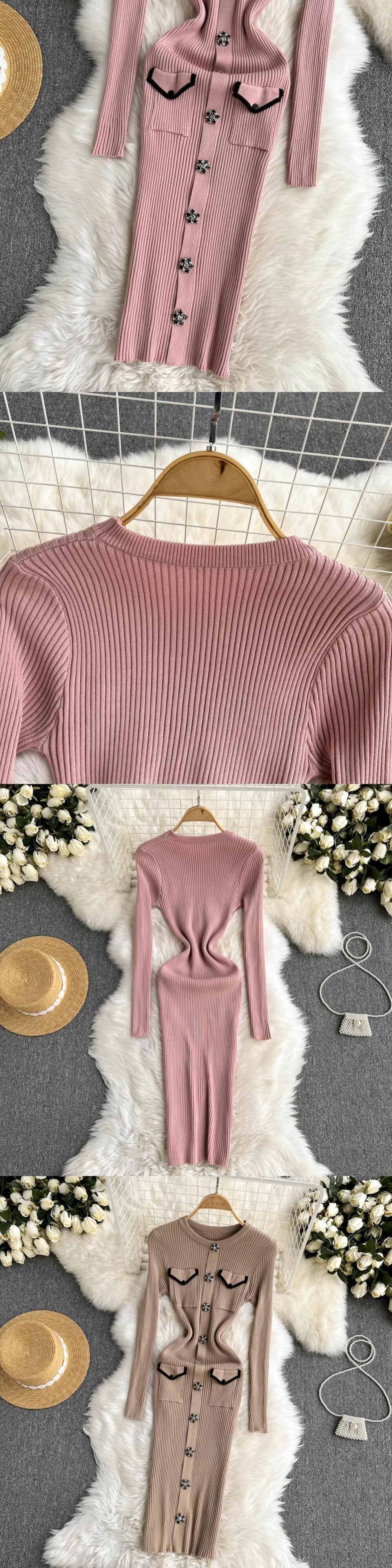 フランス淑女気質ニットドレス小香り風ウエスト痩身シングルブレスト尻セクシーな底入れセータードレス lyxaj55180693637