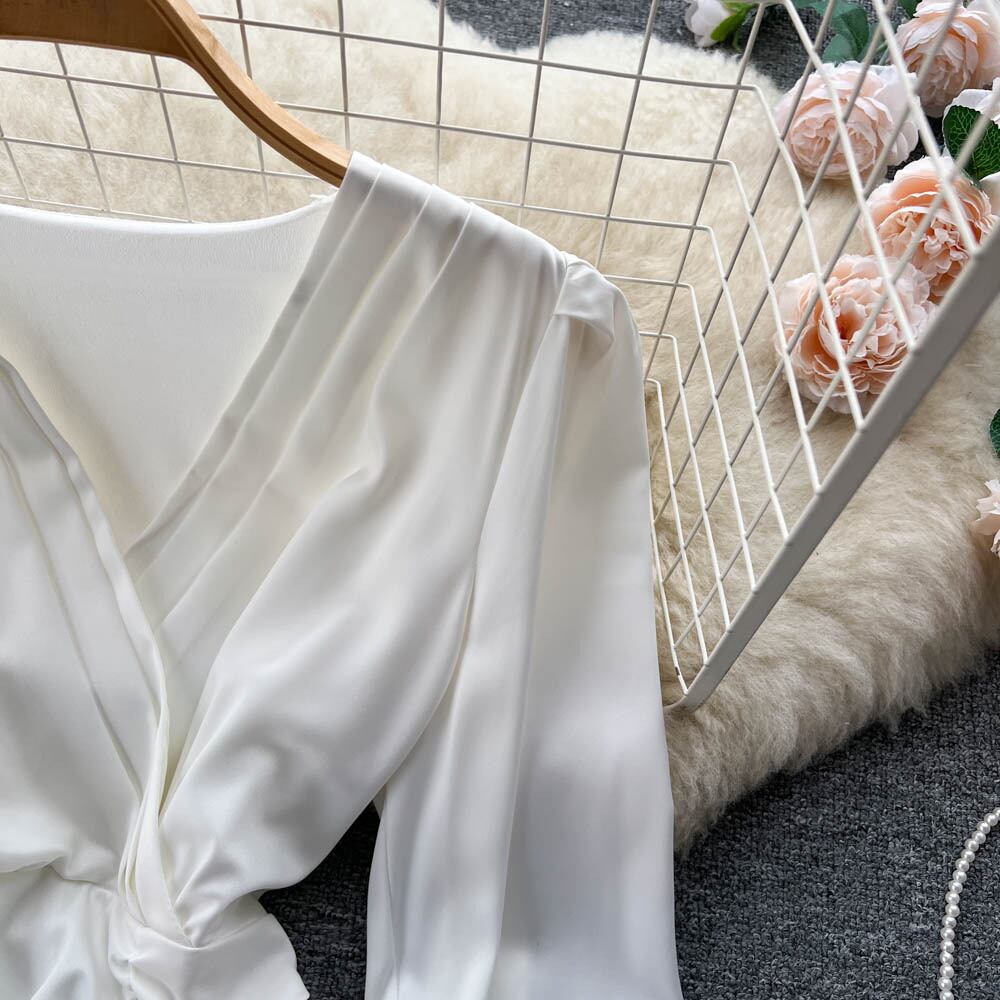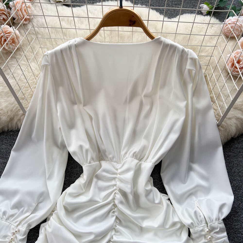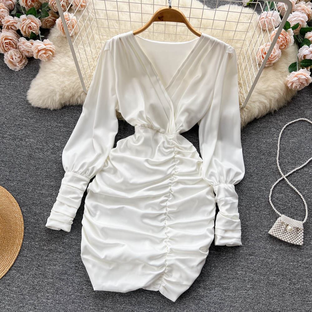 有名人の気質ウエスト痩身長袖ドレス秋の婦人服ウエスト プリーツ ホワイト ヒップ スカート スカート ロング オータム 秋物 lyxaj63909546667