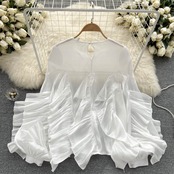 不規則なフリル長袖シフォンシャツ女性の 2022 秋服ニッチデザインフレンチシャツルーズトップ ロング オータム 秋物 lyxaj13684822256