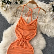 ヨーロッパとアメリカのスタイルのスリムなウエスト プリーツ サスペンダー ドレス夏の女性の純粋な欲望スタイル シックな見事なヒップパック ロング スカート サマー 夏物 ピュア ヨーロピアン lyxaj91411434520