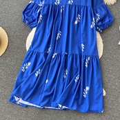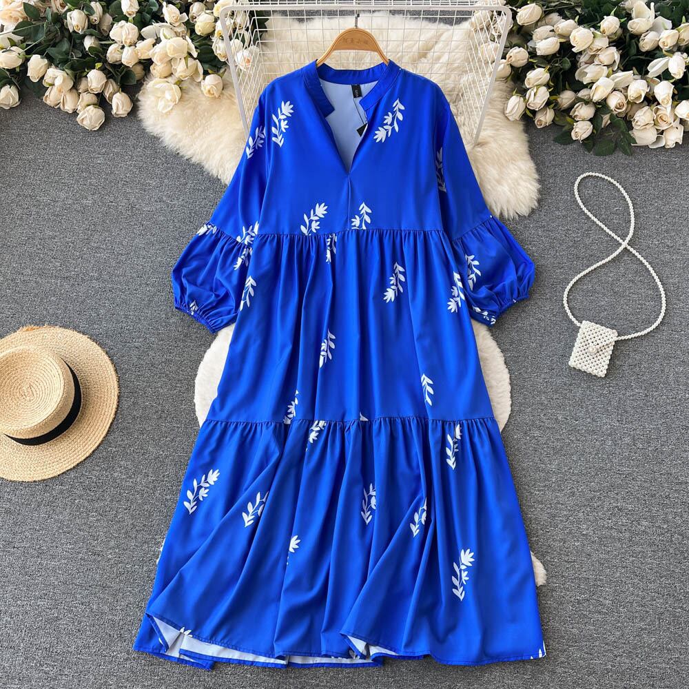 秋の新しいレトロなドレスの女性の V ネック気質ライトおなじみのパフ スリーブ スリム エスニック スタイル ビッグ スイング ホリデー ドレス オータム 秋物 Vネック lyxaj90840789356
