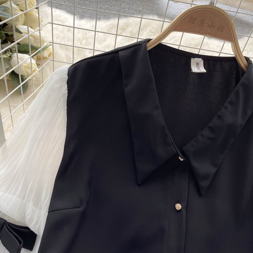 春の新作ハイエンドカラーコントラストステッチデザインセンスニッチ長袖シャツレディースレトロフレンチシックトップトレンド ロング スプリング 春物 lyxaj31698949171
