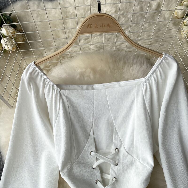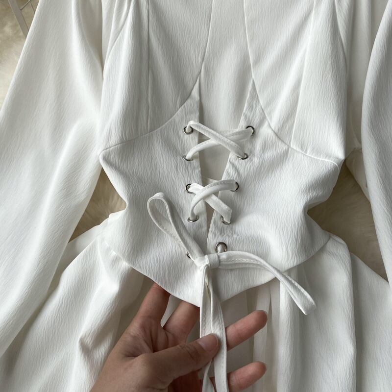 春と秋の新しいレトロウエスト痩身スタイルのシックなワンショルダースクエアネッククロスタイフリルドレス スプリング 春物 オータム 秋物 スクウェア lyxaj97338840773