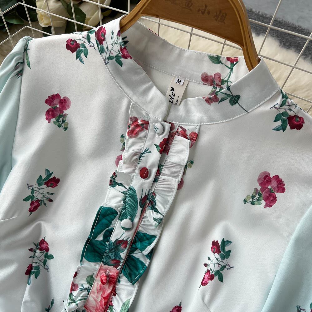 2022 秋の新スタイルの宮殿スタイルのレトロな気質スリムウエストプリント大スイングドレスの女性の膝丈のスカート レース オータム 秋物 lyxaj68817515001