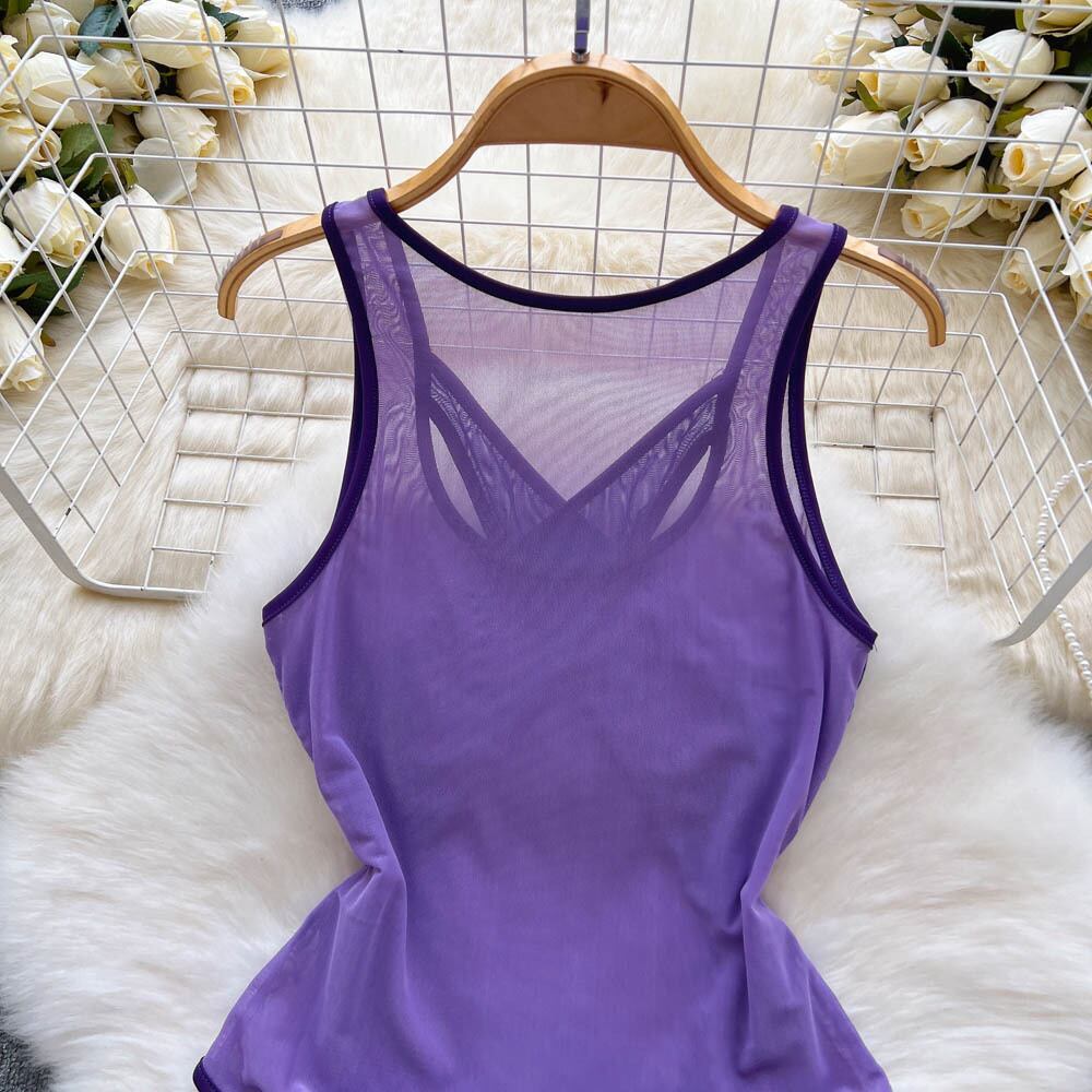 ホットデザインセンスニッチヒットカラー中空ノースリーブベストワンピースパンツ女性の夏のウエスト痩身底入れ下着 サマー 夏物 lyxaj58719199816