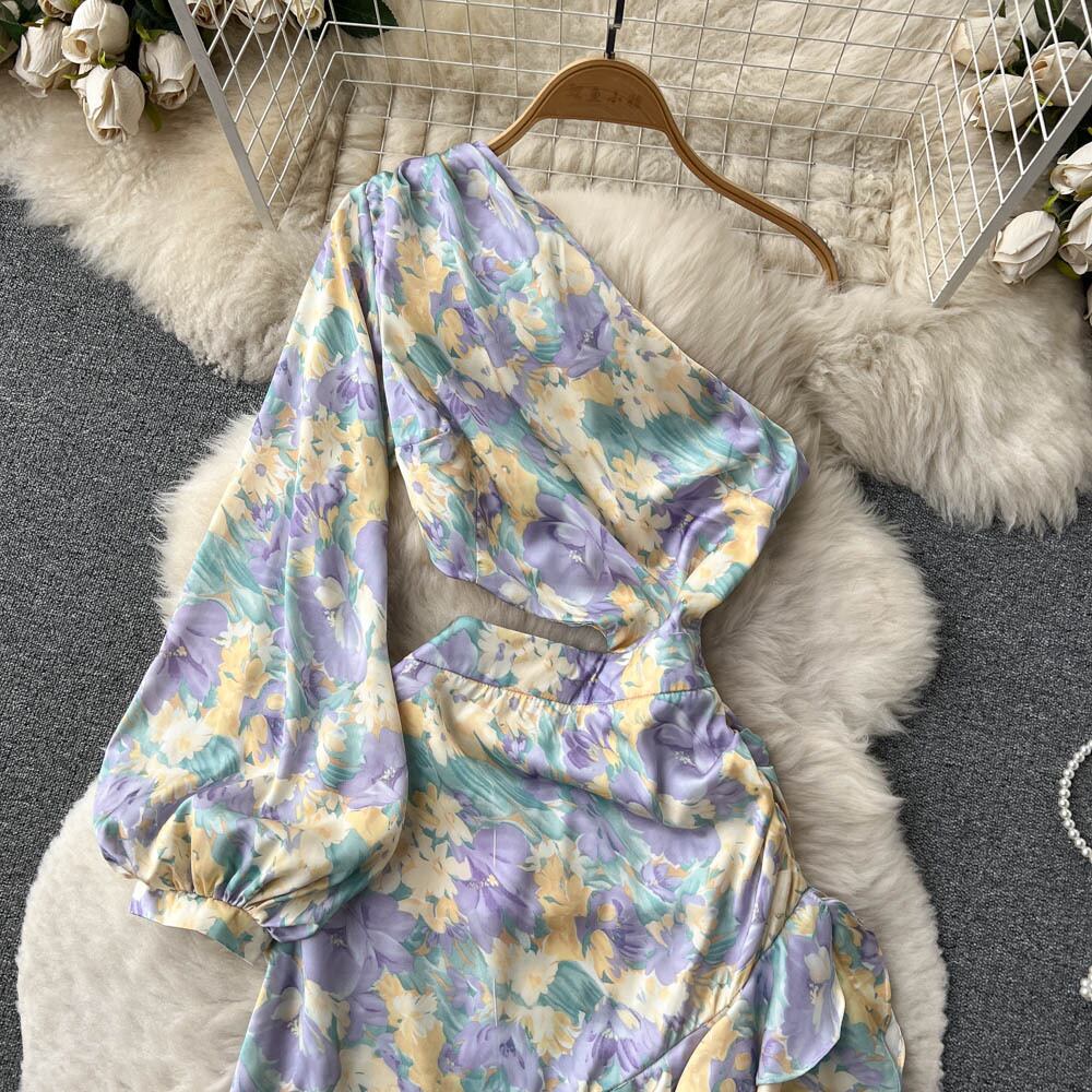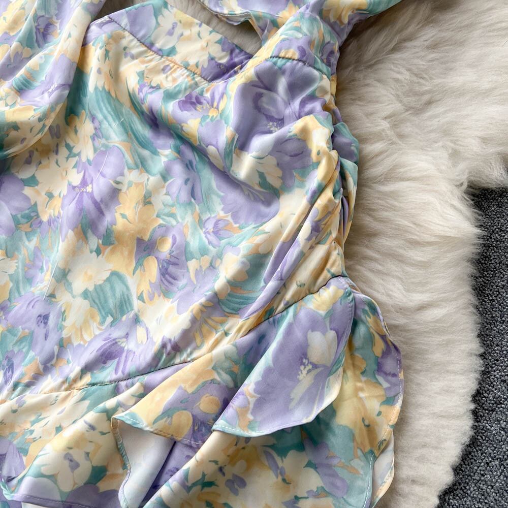 フランス シフォン 花柄 イレギュラー ウエスト スリム ミドル丈 ドレス 女性らしさ セクシー セレブ バッグ ヒップ スカート lyxaj94581877814