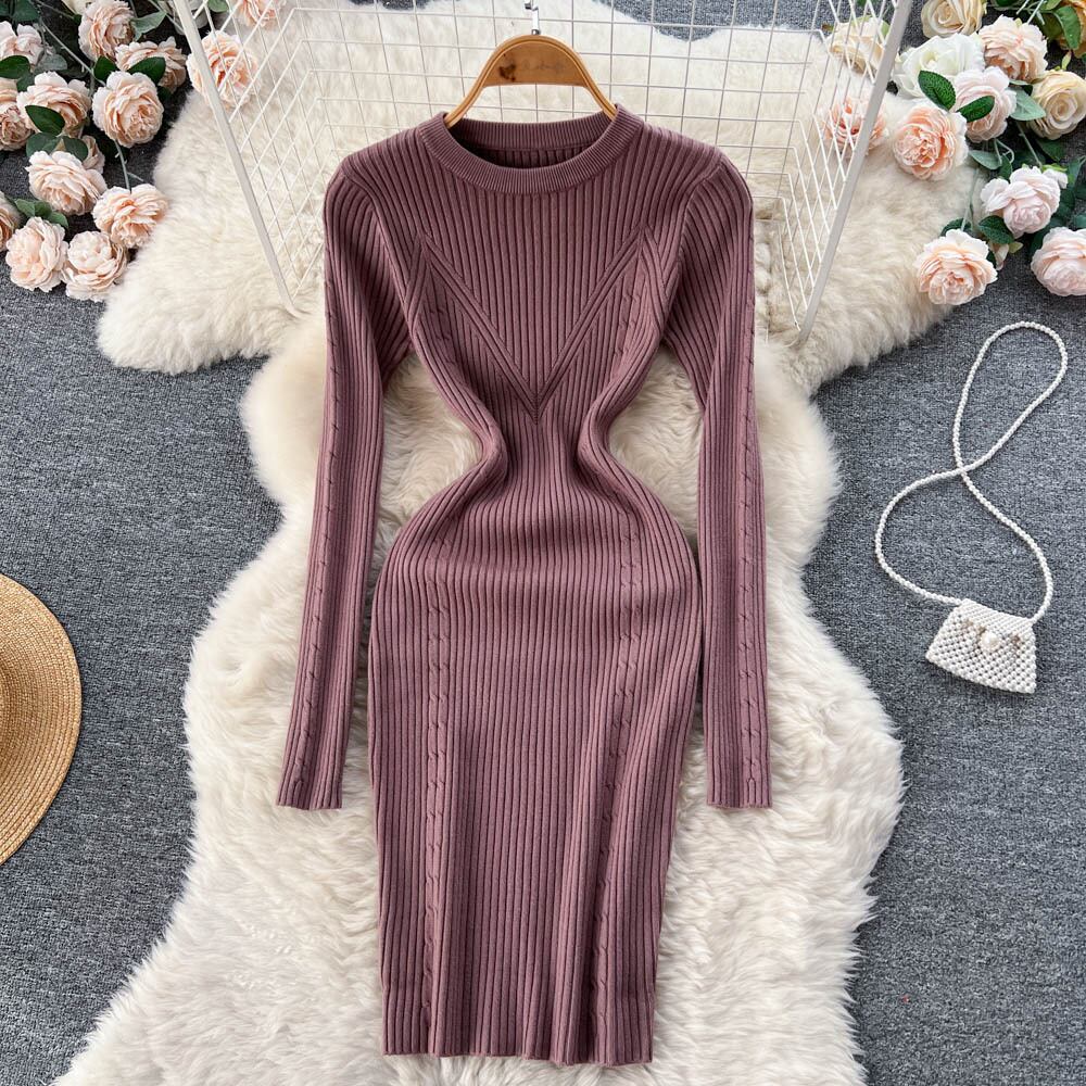 秋と冬のファッションミッドレングスバッグヒップセータースカート女性の自己修養オールマッチ厚手のニットボトムス無地セクシーなドレス オータム 秋物 ウィンター 冬物 ソリッドカラー lyxaj25286031846