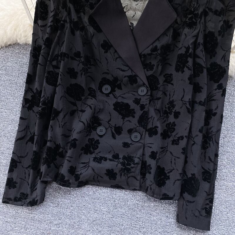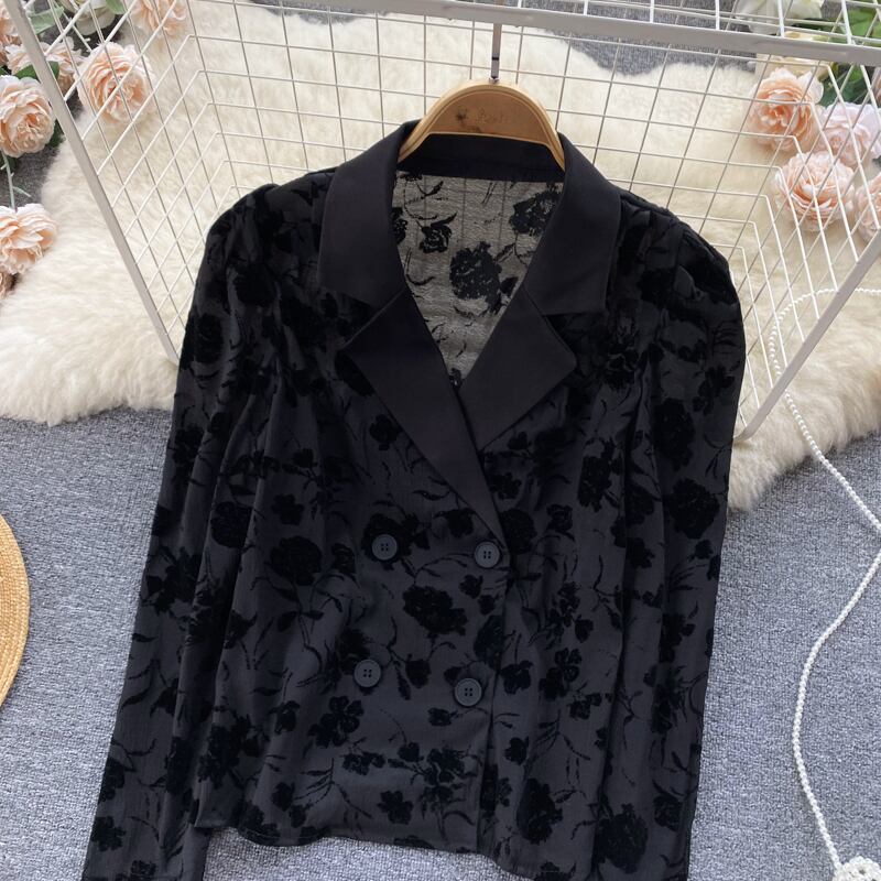 スタイル スーツ 襟 パフスリーブ 花柄 シャツ 女性 秋 レトロ ニッチ デザイン センス オールマッチ 長袖 シックなシャツ ロング オータム 秋物 lyxaj17362850125