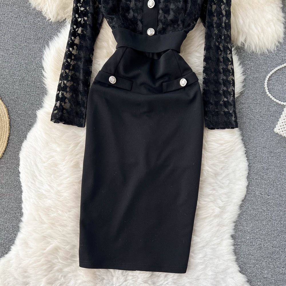 2022 秋の新スタイルのファッション気質エレガントで薄いセクシーなレース明らかにウエストバッグヒップドレス オータム 秋物 lyxaj85006079536