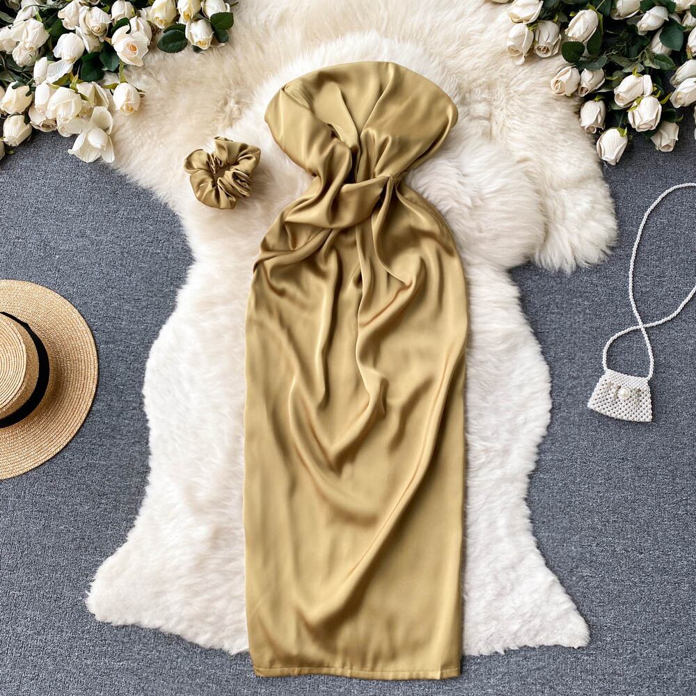 フランスの超妖精気質チューブトップ宴会イブニングドレス 2022 夏新ハイウエストスリムバッグヒップスリットドレス ハイウェスト サマー 夏物 lyxaj33221565909