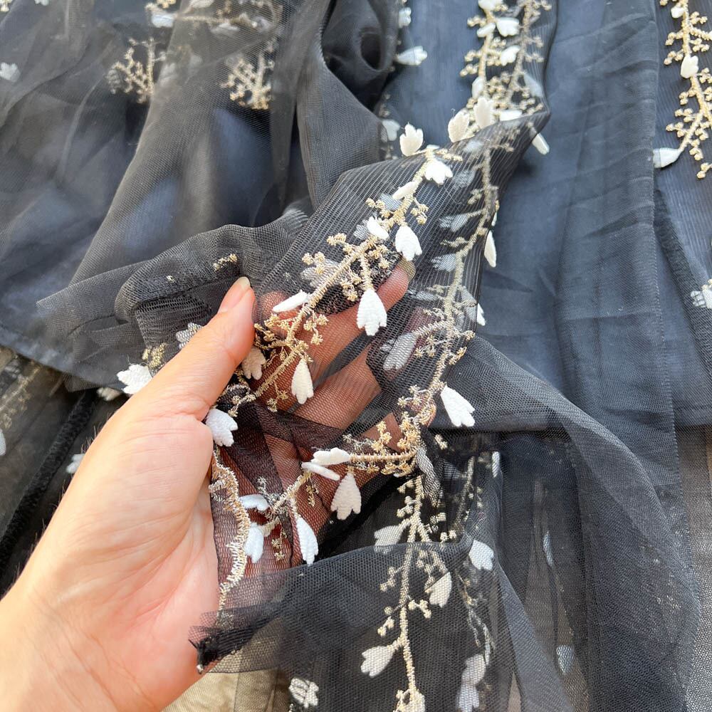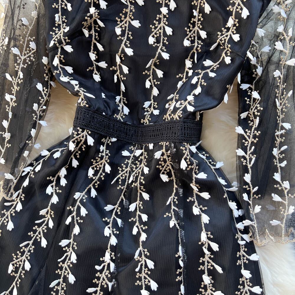 ヨーロッパとアメリカのインスタイル重工業レース刺繍メッシュステッチウエストスタンドカラードレス女性フレンチ A ライン大スイングスカート Aライン ヨーロピアン lyxaj10730379478