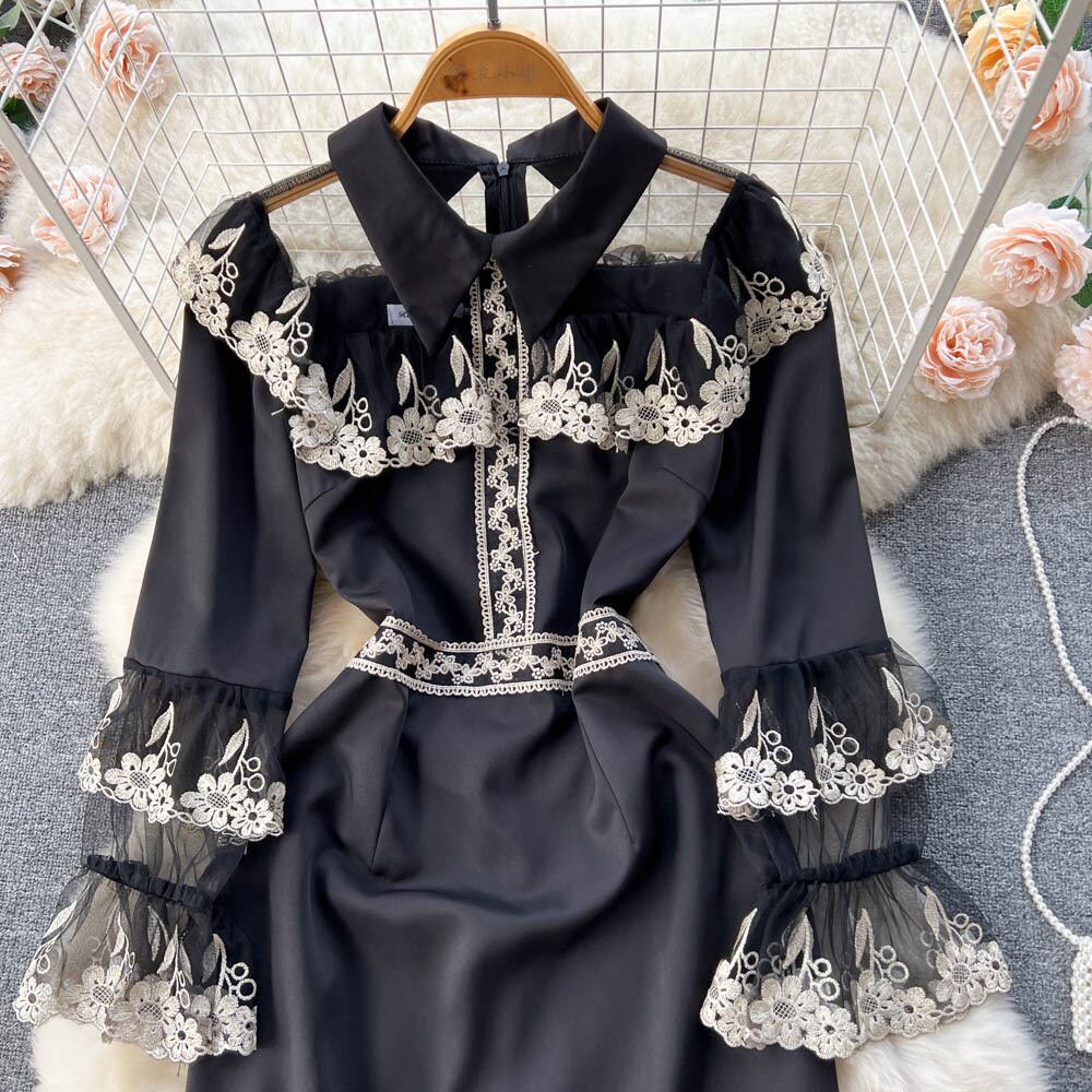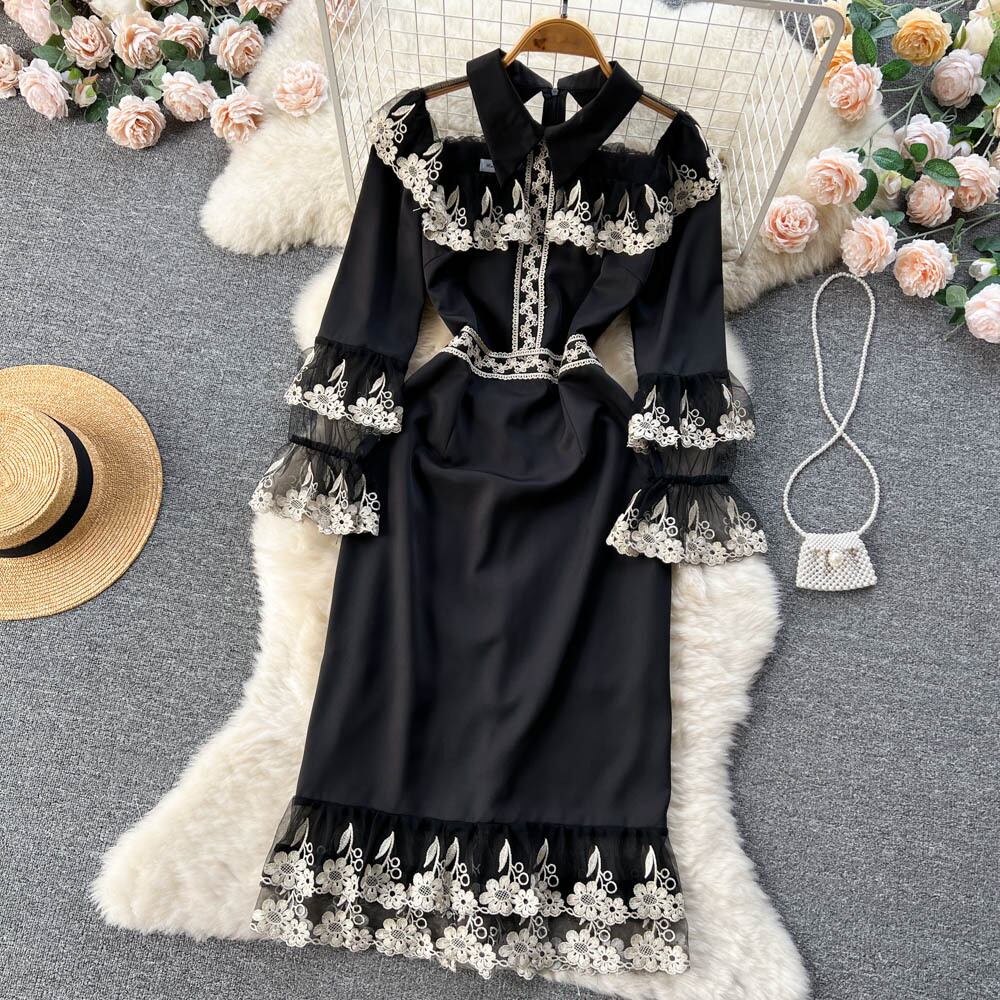 ヨーロッパとアメリカのフランス宮廷スタイル フィッシュテール ドレス レディース レトロ 重工業 レース 刺繍 ウエスト スリム バッグ ヒップ レディ スカート ヨーロピアン lyxaj30250628315