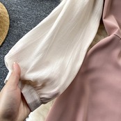 フレンチレトロラペルミドル丈ハイウエスト長袖ドレスレディースコントラストカラースプライシングロングスカートビッグスイングAラインスカートトレンディ lyxaj81231673751