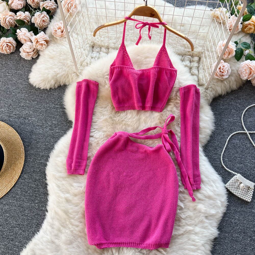欧米風スーツ レディース ホルターネック ショートキャミソール+巾着タイバッグ ヒップスカート 袖付きスーツ トレンド ヨーロピアン lyxaj41409505179