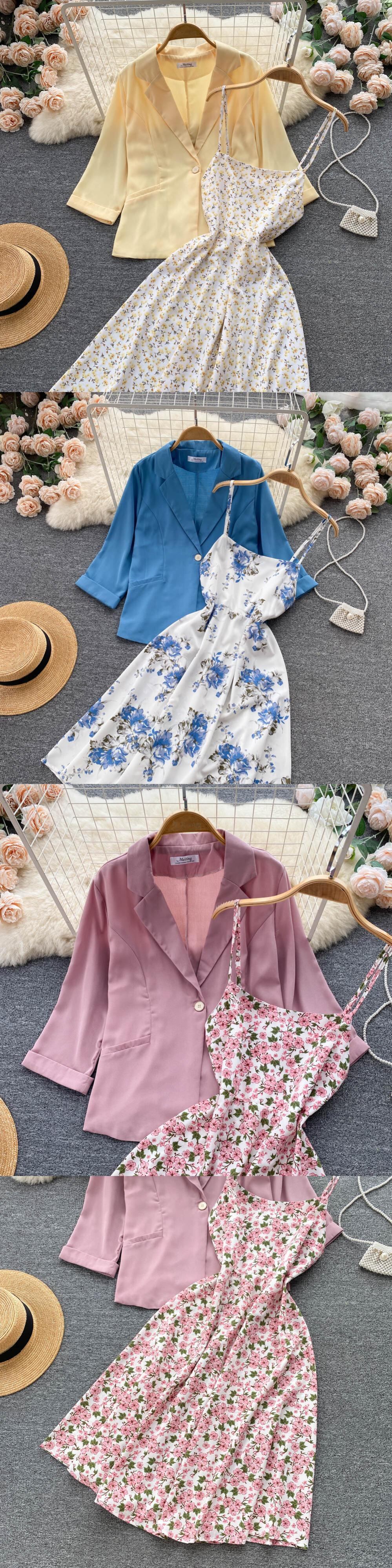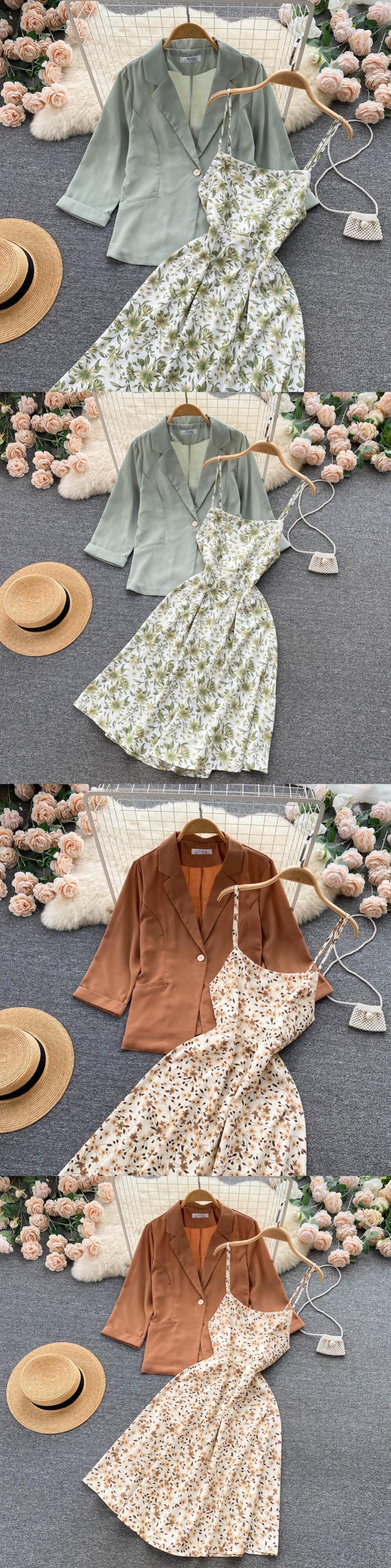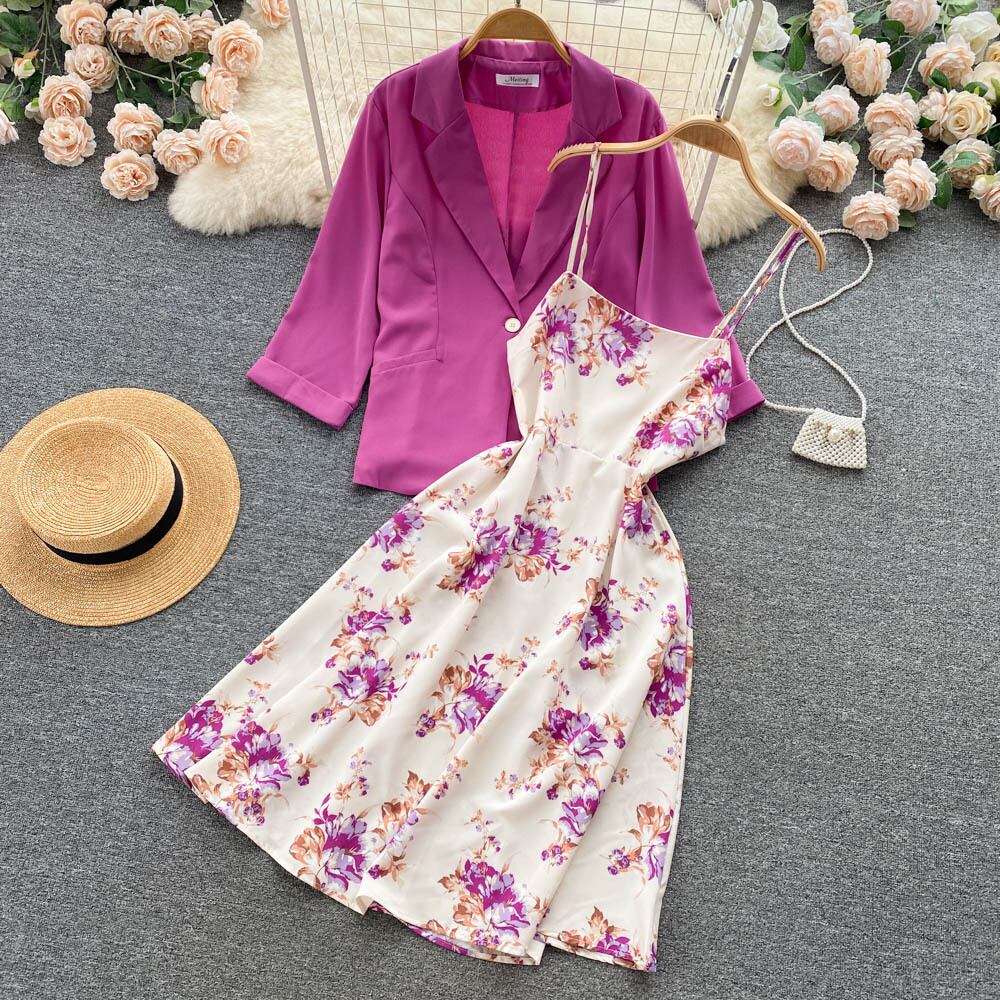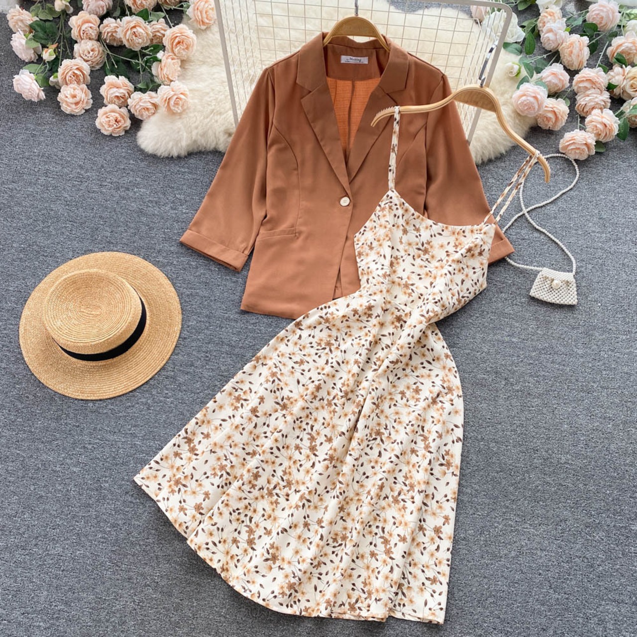 小さなスーツ花柄スカート スーツ 2022 新しい女性のウエスト痩身サスペンダー ドレス気質年齢を減らす 2 点セット lyxaj88435650922