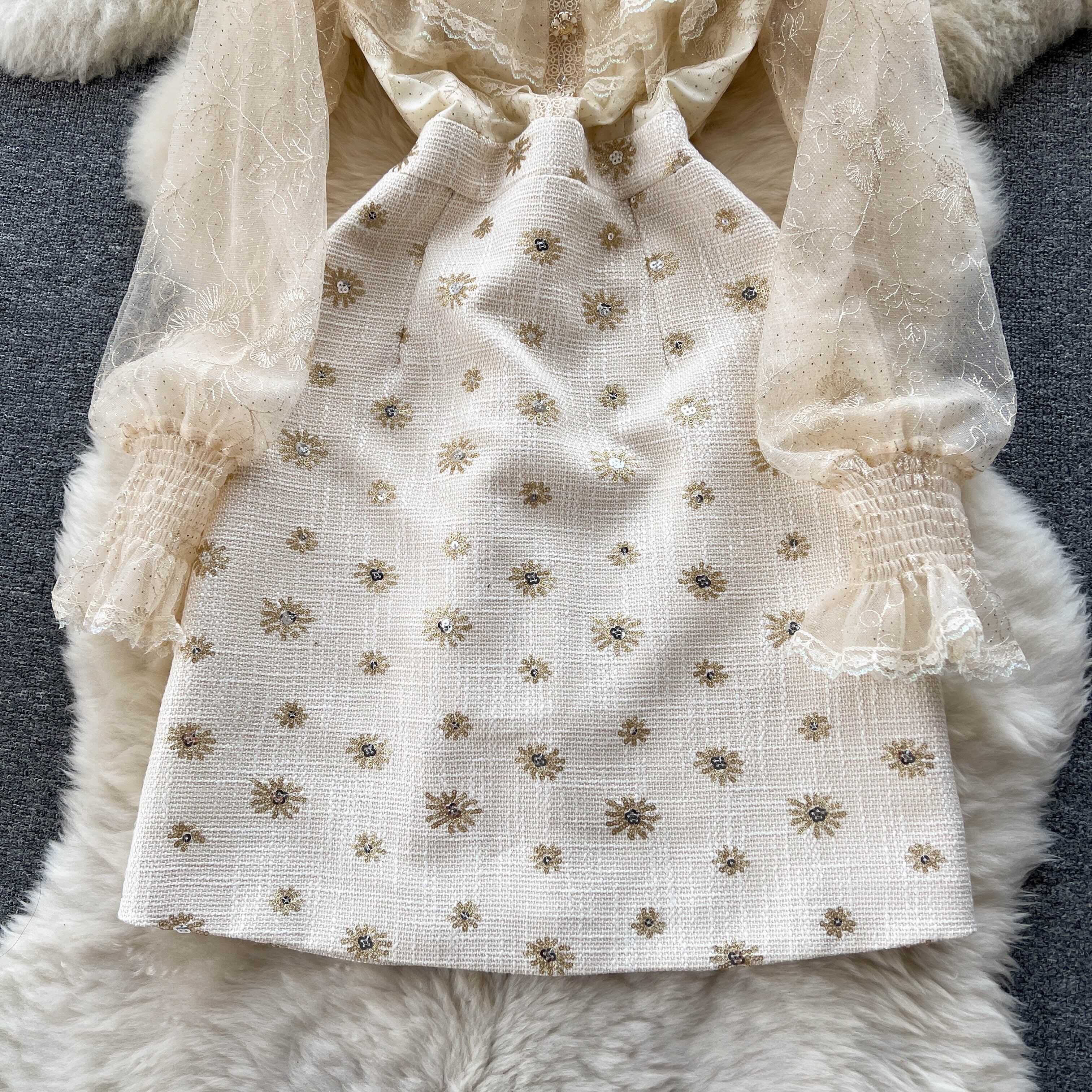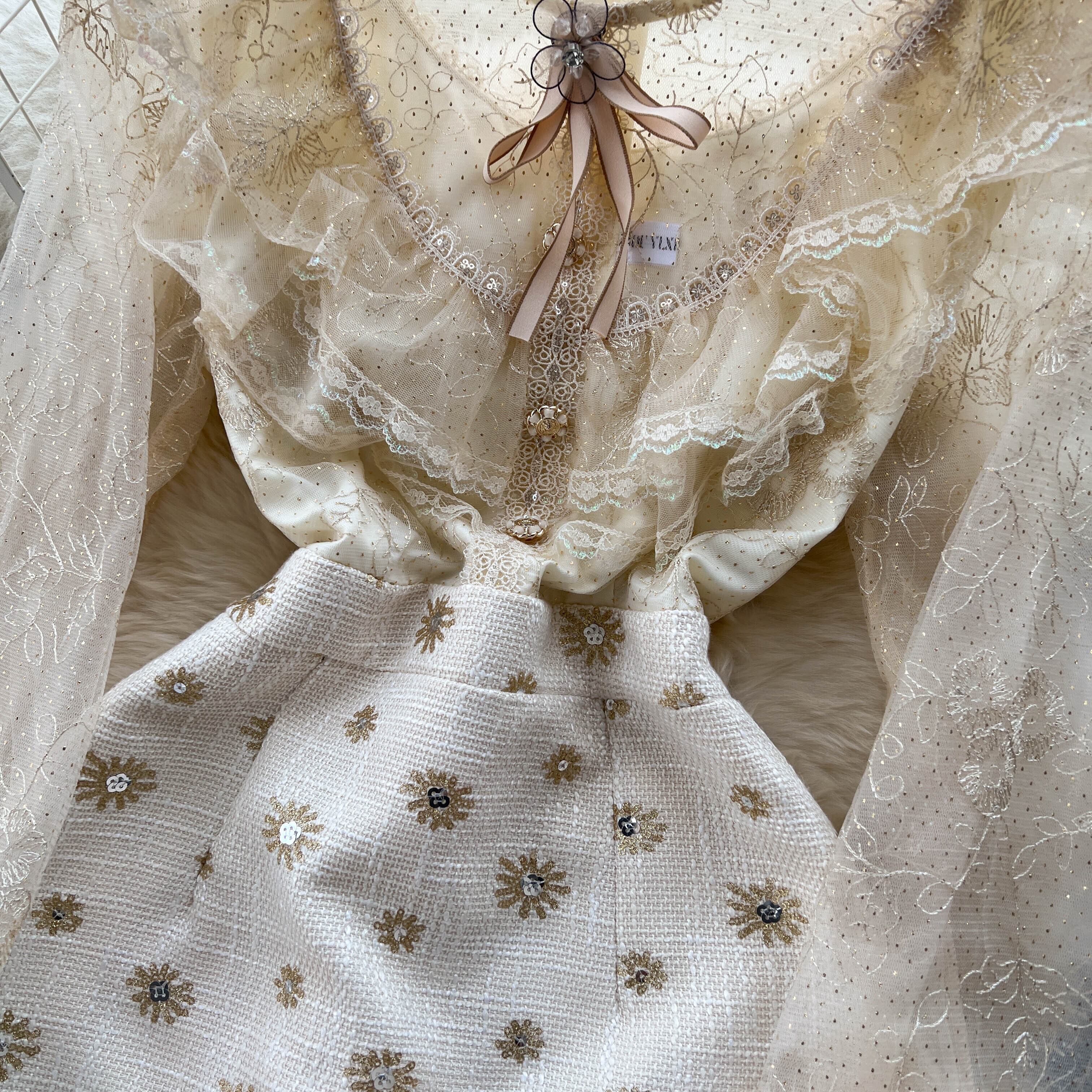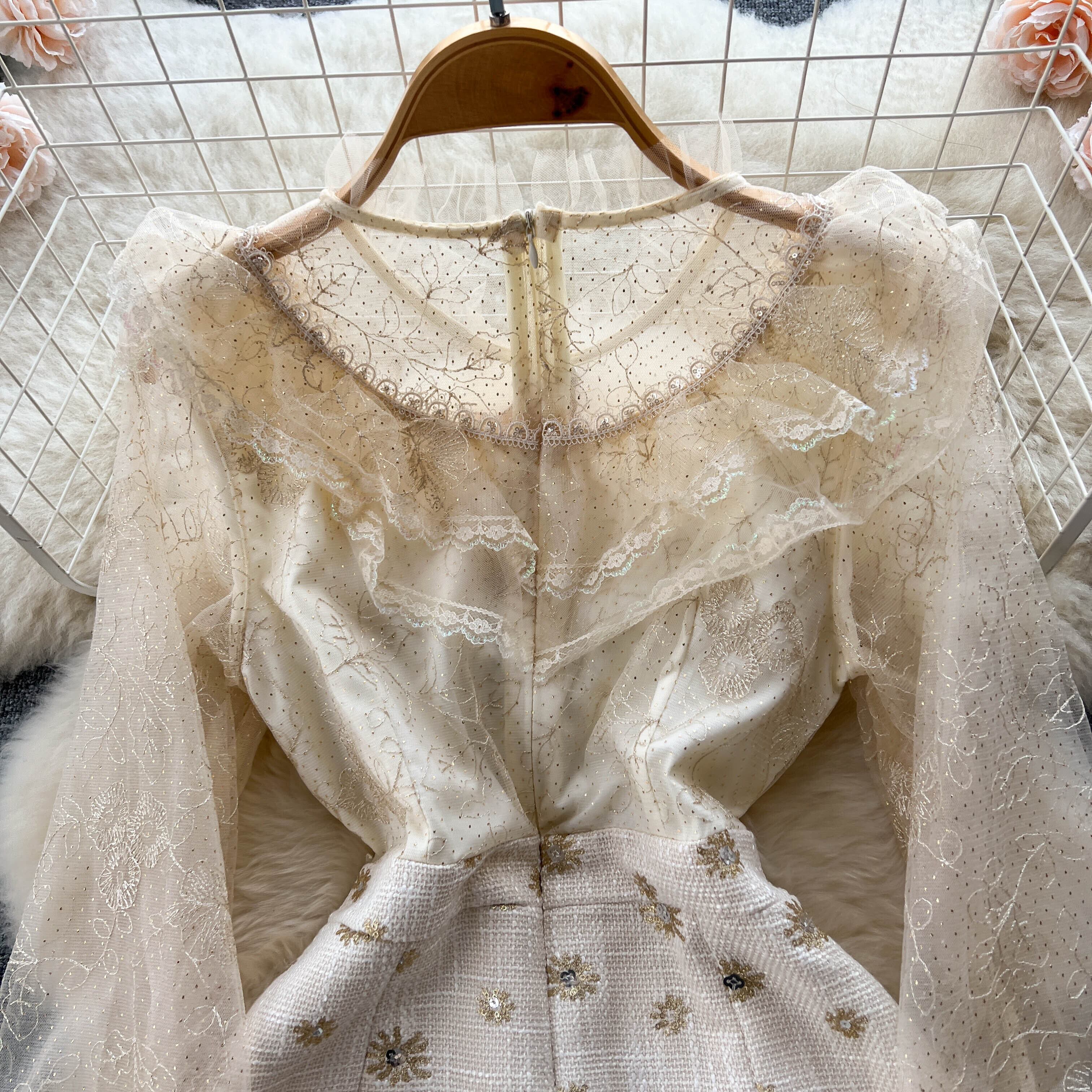 秋と冬の新しいスタイルの小さなフレグランス ライト ラグジュアリー 重工業 ビーズ フリル メッシュ レース 刺繍 ステッチ ツイード ドレス オータム 秋物 ウィンター 冬物 lyxaj53254978417