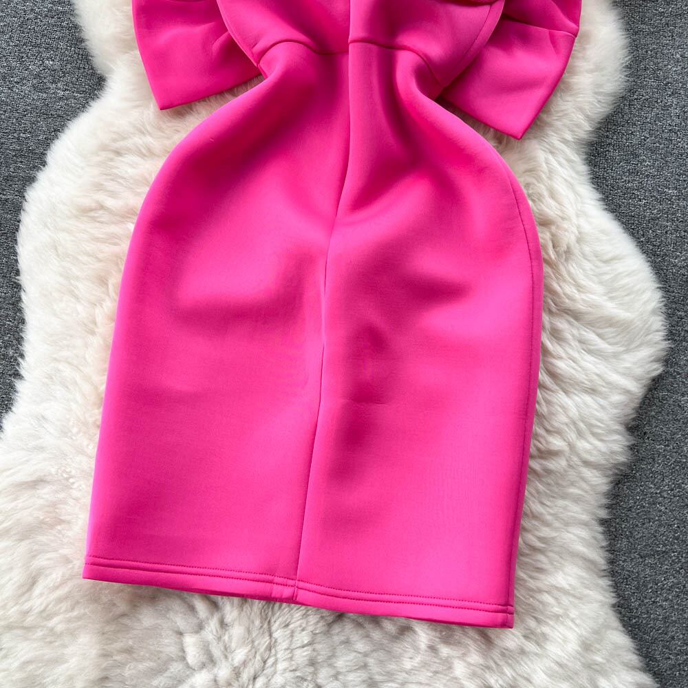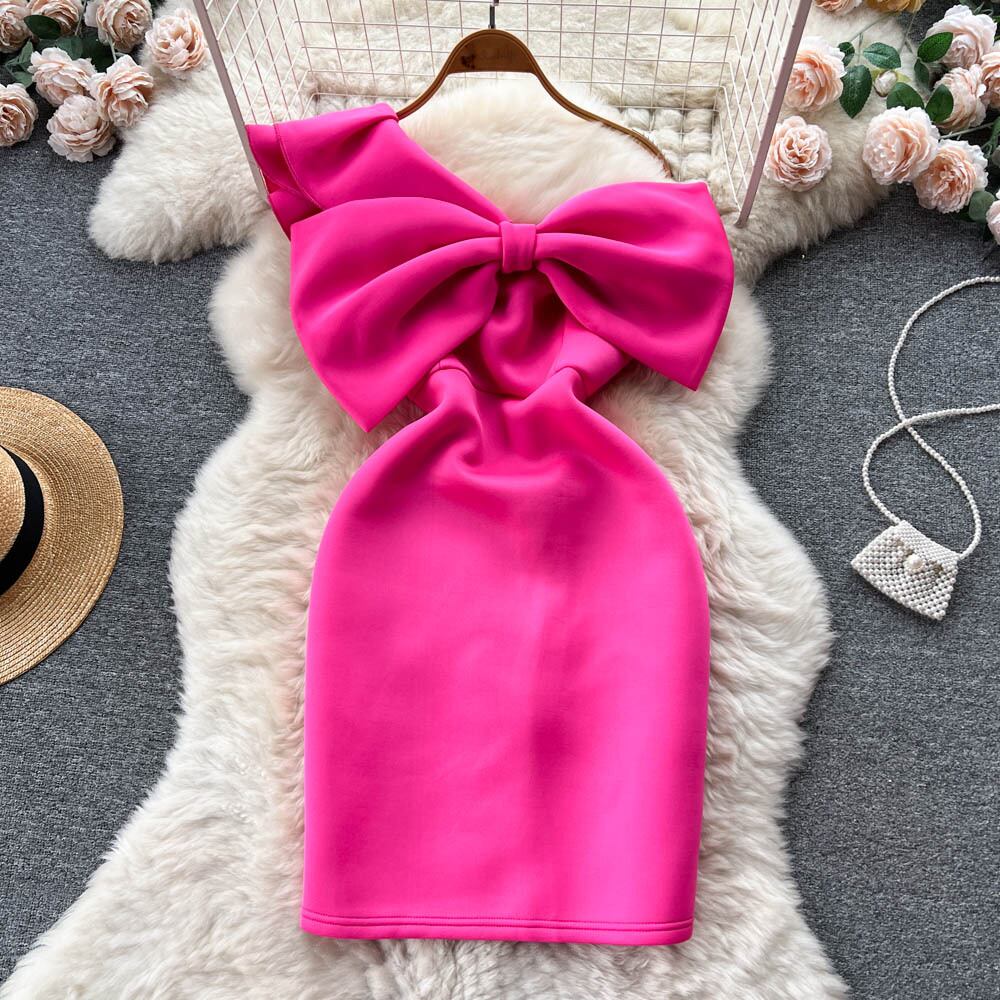 夏の新しいセクシーな純粋な欲望スタイル不規則な立体弓ワンショルダー斜め襟チューブ トップ バッグ ヒップ セレブ ドレス リボン サマー 夏物 ピュア lyxaj59068112775