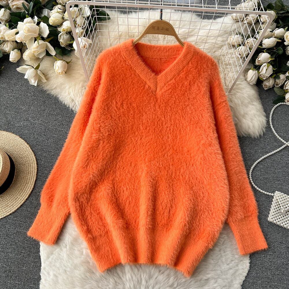 シックなゆったりVネックセーター レディース インナー ニット ボトムス シャツ 秋冬 長袖 プルオーバー ゆったり風 上潮 ロング オータム 秋物 ウィンター 冬物 lyxaj75422569700