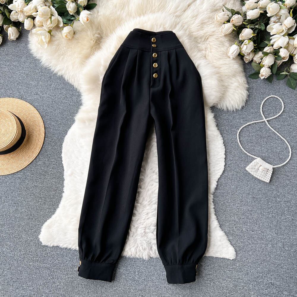 スポーツパンツレディースルーズレッグパンツ2022年秋新作ボタン痩身ハーレム九点カジュアルキャロットパンツ オータム 秋物 lyxaj13527997025