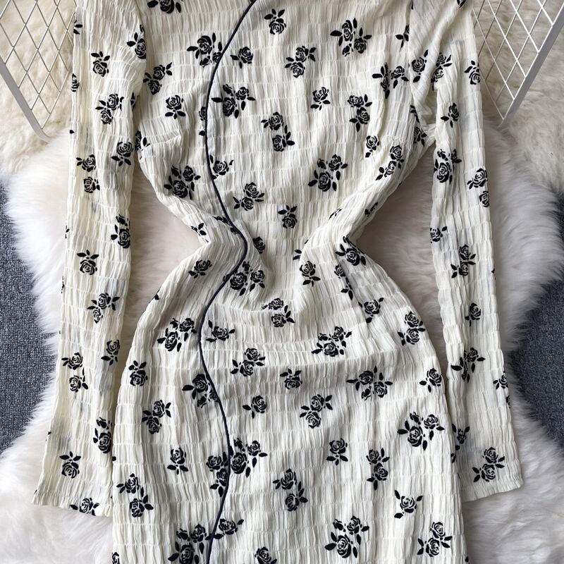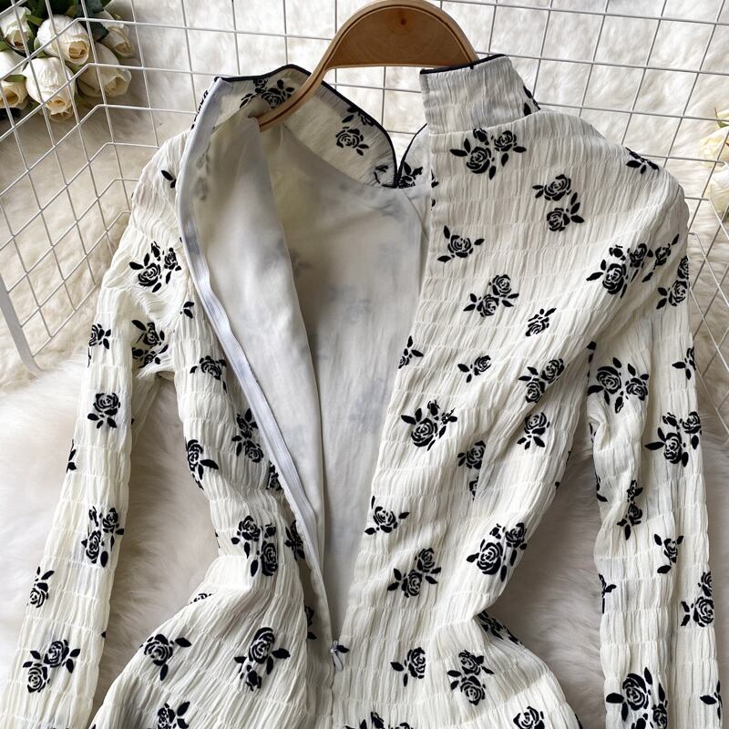 春秋新作花柄ワンピ レディース 軽くて馴染みやすいスタイル 立ち襟 長袖 ウエストウエスト レトロスリット チャイナバッグ ヒップワンピース ロング スプリング 春物 オータム 秋物 lyxaj60428567368