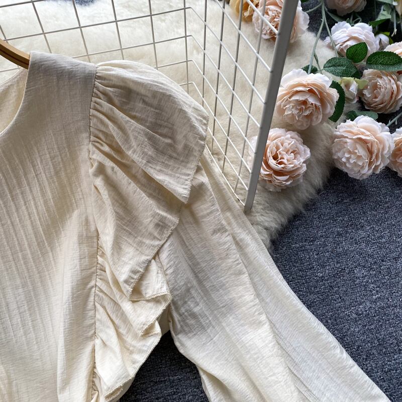 2023 春の新フランス菌サイドラウンドネックウエストスリム platycodon ドレス女性の小さな新鮮な王女のスカート スプリング 春物 Oネック lyxaj74691475461
