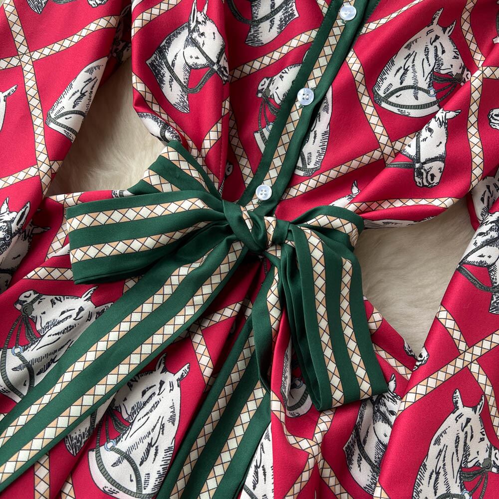 欧米ファッションオールマッチ個性チェック柄アニマル柄プリント蝶ネクタイ大振りワンピロングスカートトレンディ リボン ヨーロピアン lyxaj16274687466