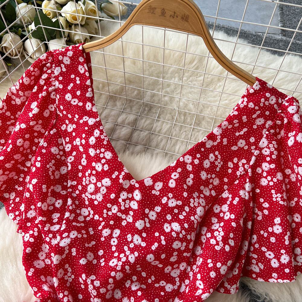 夏の優しい風Vネックバブル半袖花柄ドレスレディースフレンチレトロ気質ウエスト痩身ロングスカート サマー 夏物 lyxaj44762508947