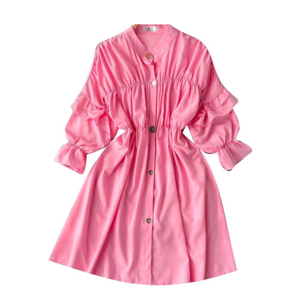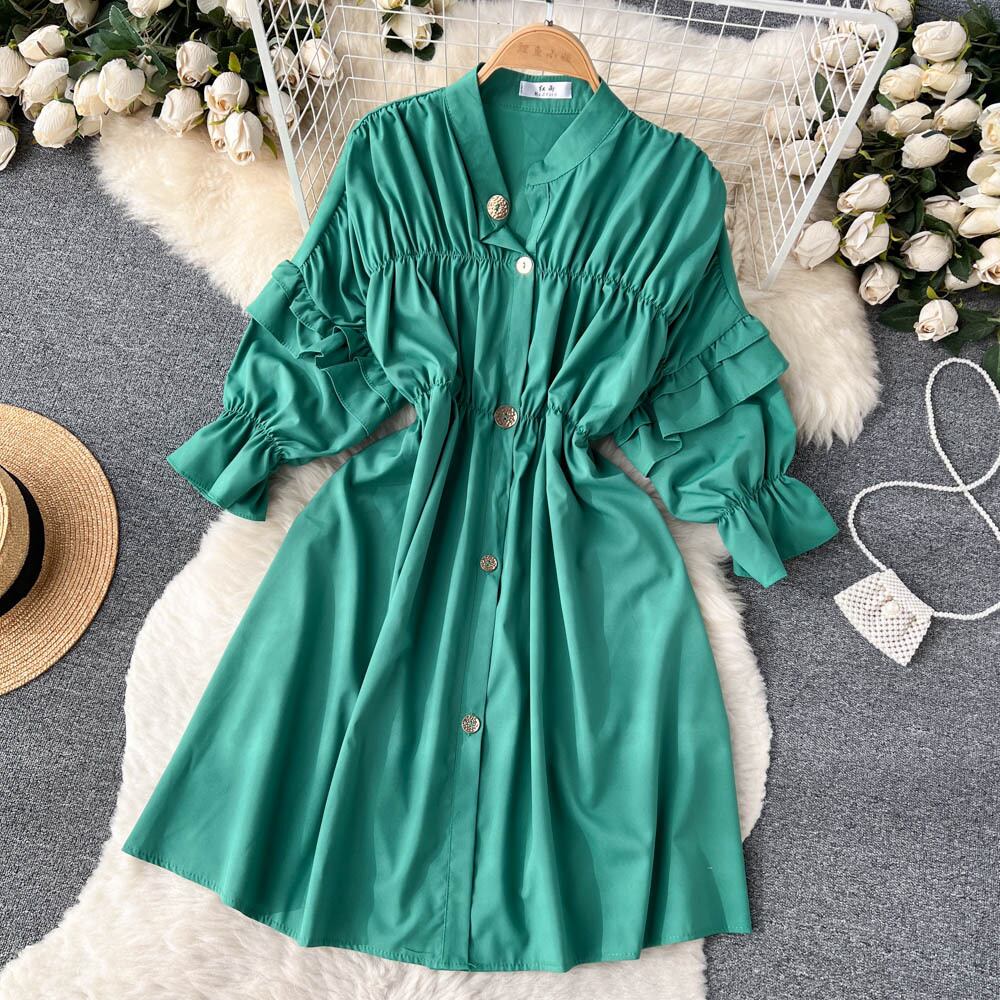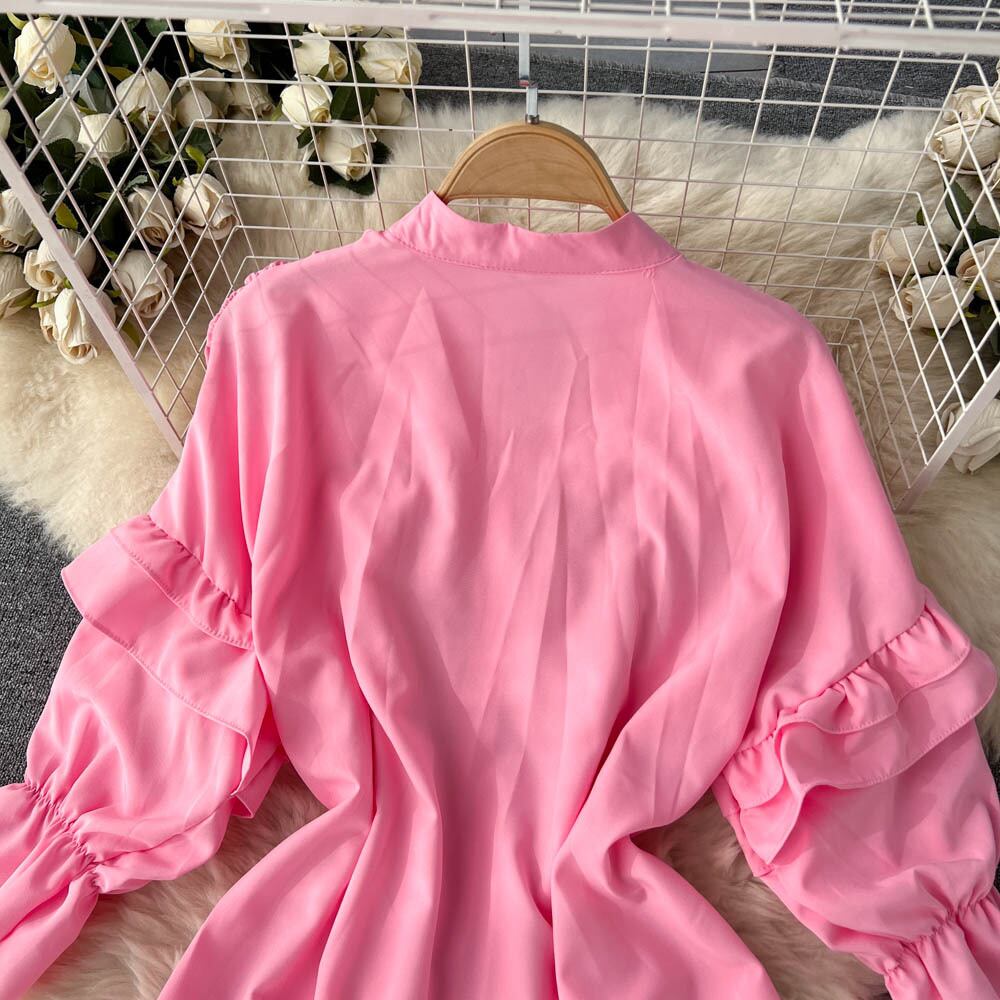 春夏らしいミドル丈スタイルのスウィートなデザインセンスニッチウッドイヤープリーツパフスリーブルーズドールドレス 大人ガーリー キュート カジュアル スプリング 春物 サマー 夏物 lyxaj37831669567