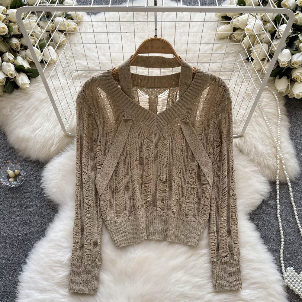 センスニッチ くり抜き 長袖 セーター 秋 婦人服 怠惰なスタイル ゆったり 万能 丸首 ボトムス シャツ トップス ロング オータム 秋物 Oネック lyxaj29575073860