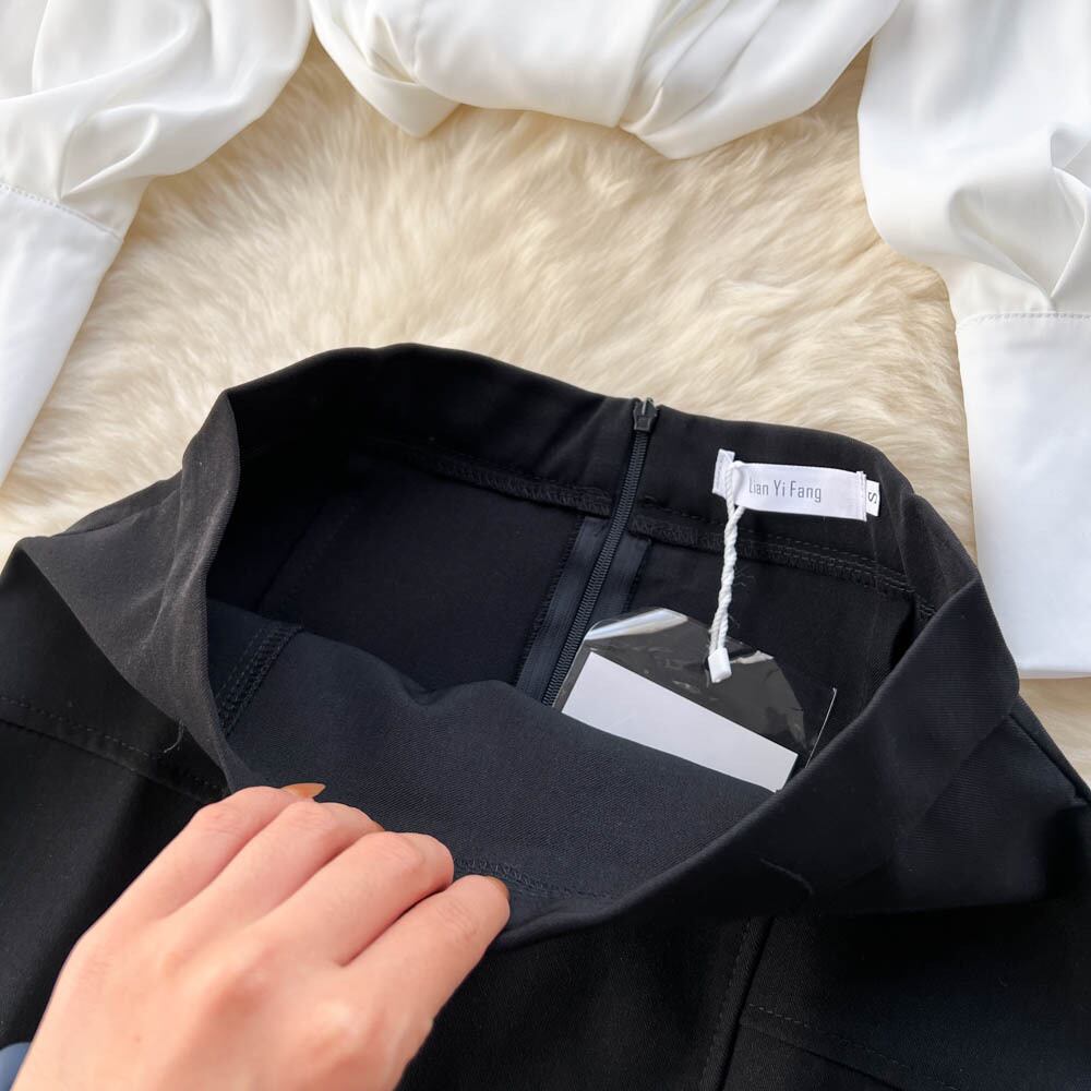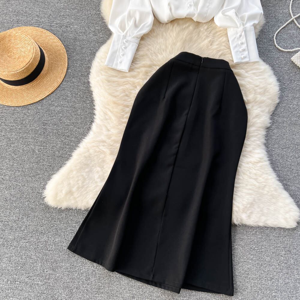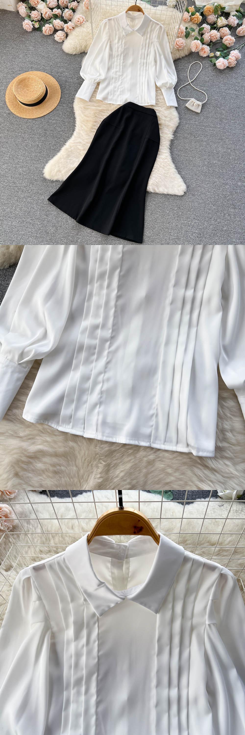 春秋プロOLセット レディース プリーツラペル 白シャツ+フィッシュテイルヒップスカート 2点セット ホワイト スプリング 春物 オータム 秋物 lyxaj91749692199