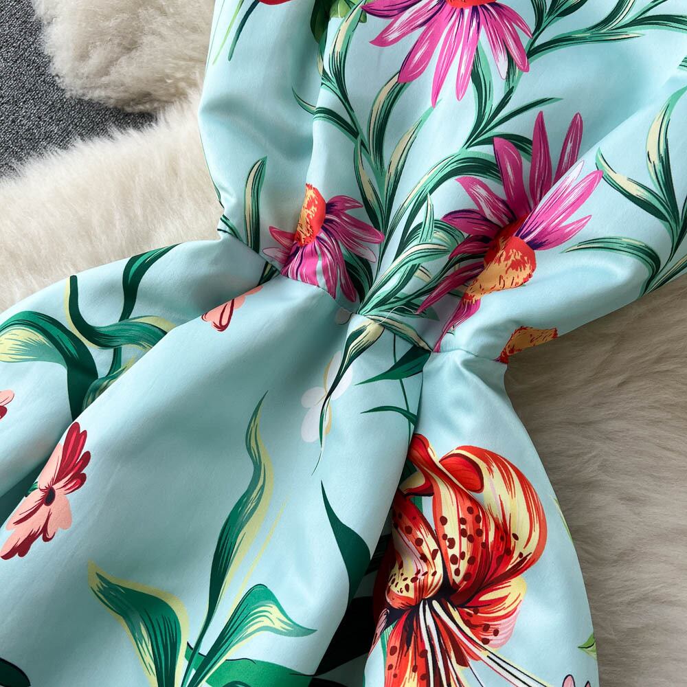 フレンチスイートニッチデザインセンスウエスト痩身ノースリーブドレスサマーホリデースタイルプリントベストスカート 大人ガーリー スウィート キュート カジュアル 夏物 lyxaj59965654217