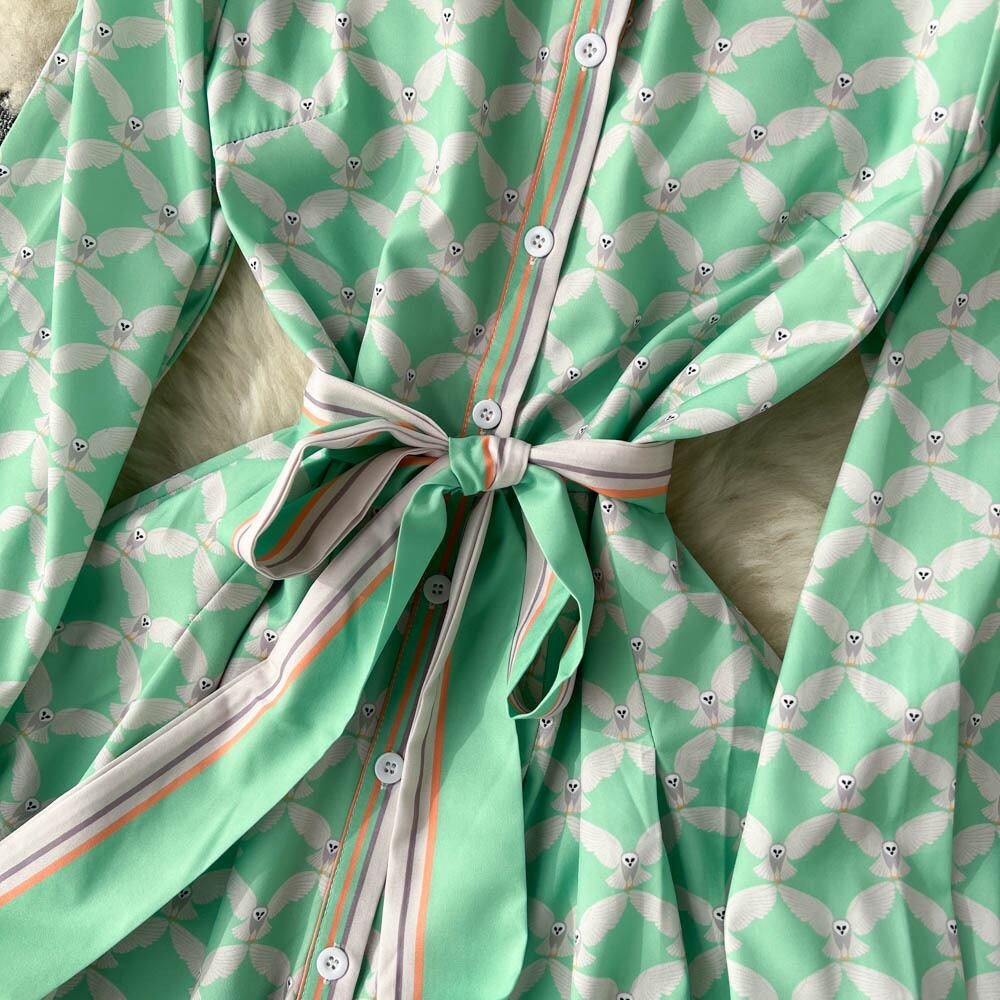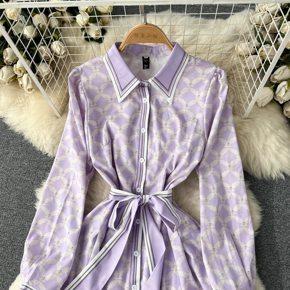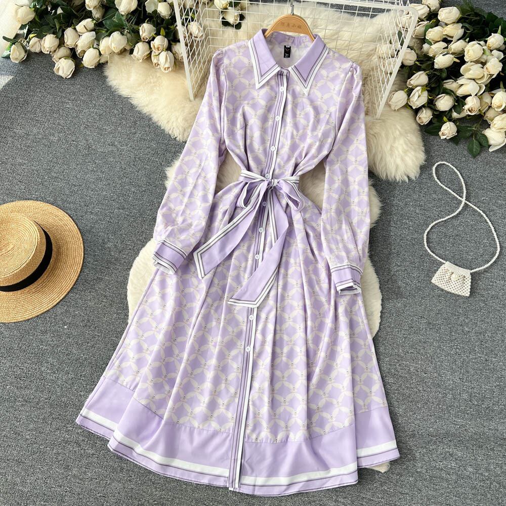 春の新しい気質の小さな香りのドレスの女性のデザインのセンス長袖フレンチラペル大スイングAラインプリントスカート ロング スプリング 春物 lyxaj19697087775
