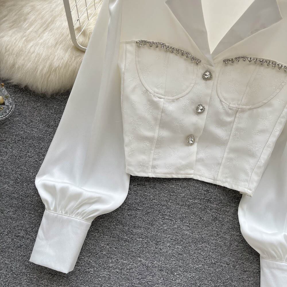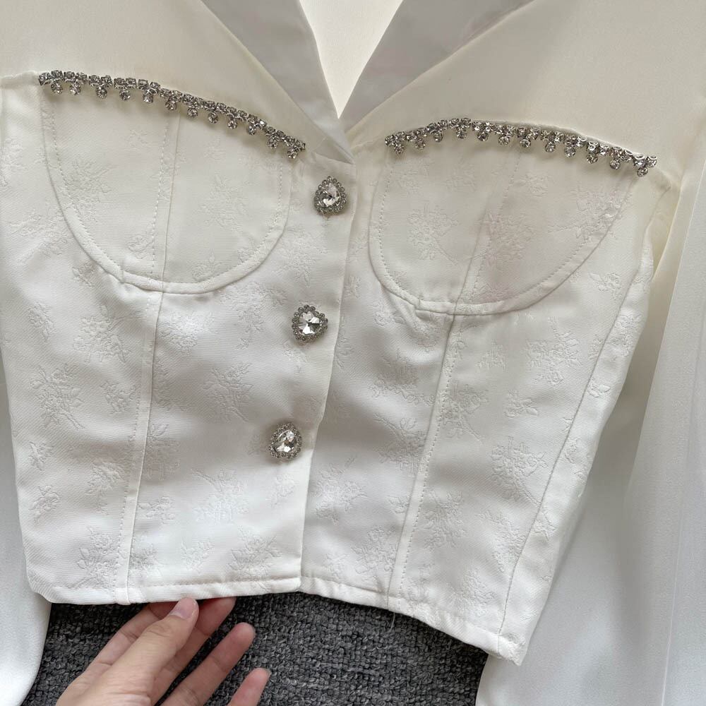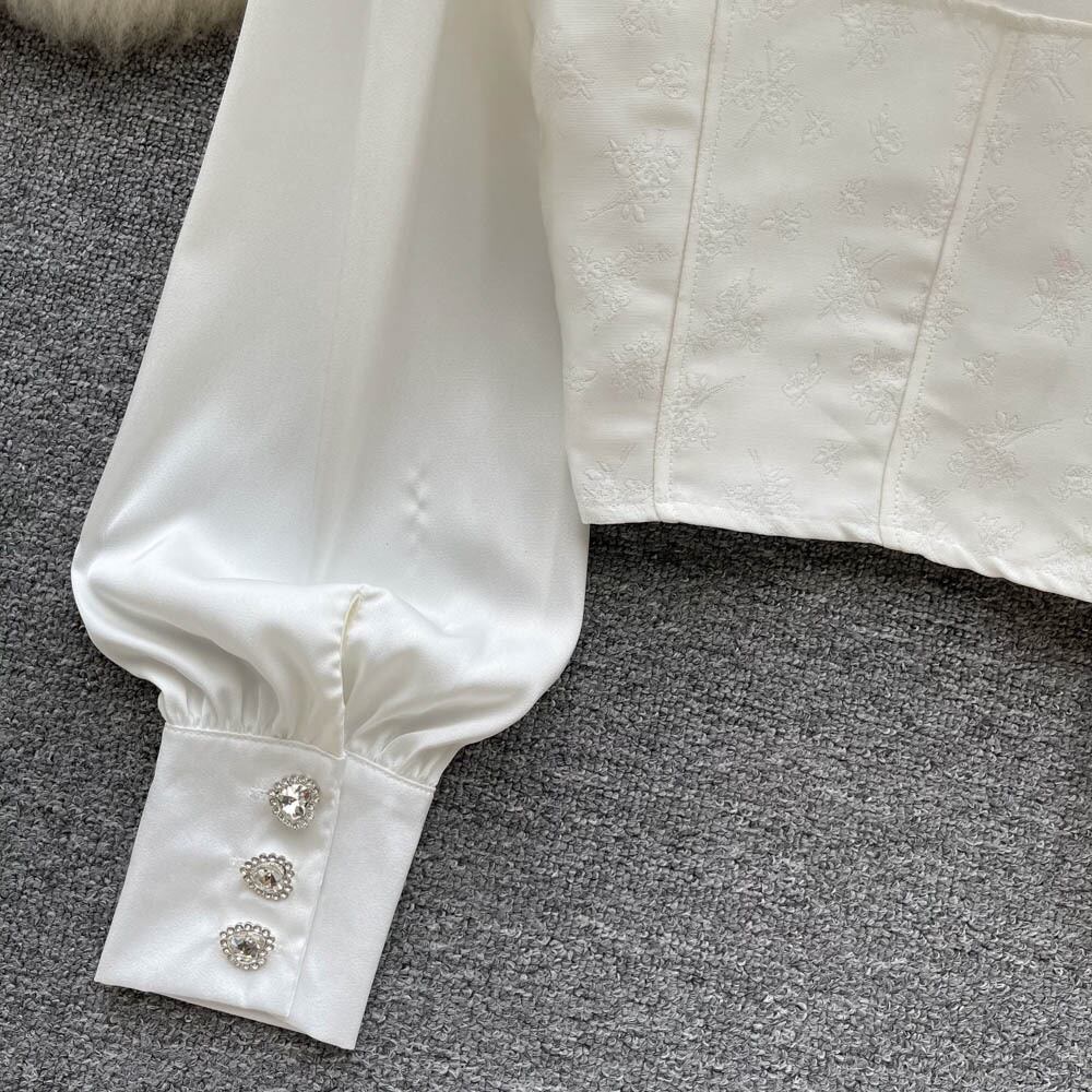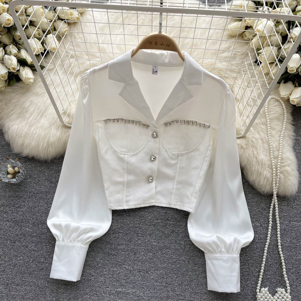 Xiaoxiangfeng OL フレンチジェントルシャツ 2022 秋のドレス木製耳 V ネック洋風白オールマッチシャツ ホワイト オータム 秋物 Vネック lyxaj77660662974